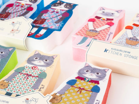 Kusuguru Japan Neko-San Kitchen Sponges Set of 3