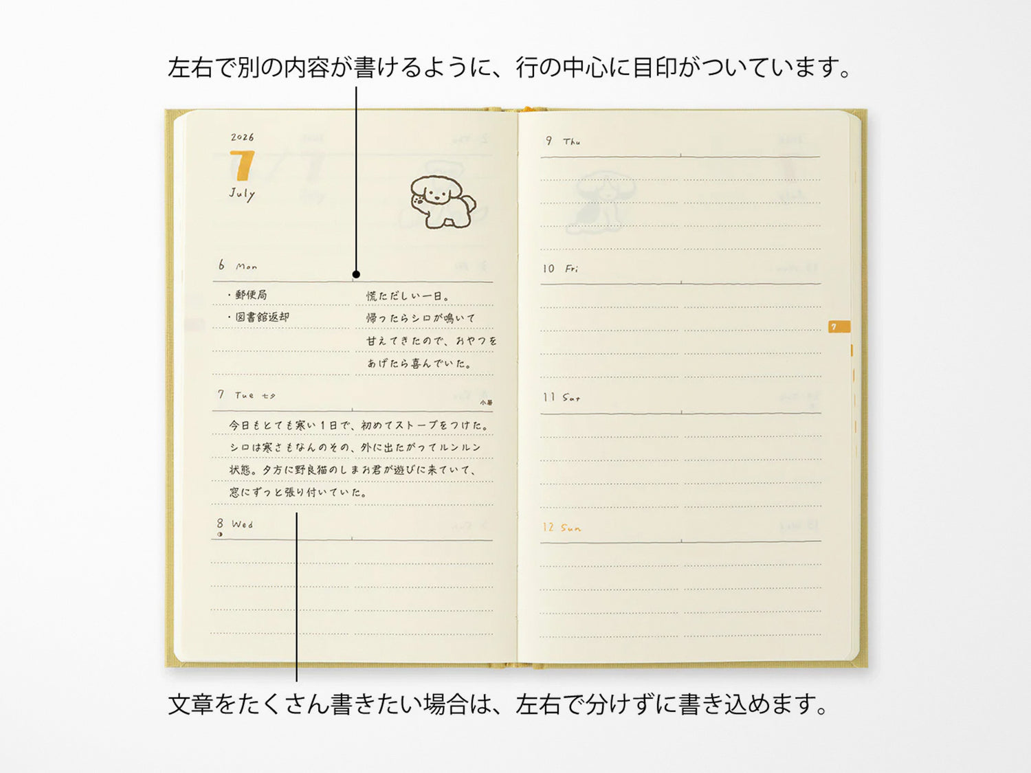 The pages are thread-sewn, allowing the diary to be open flat at 180 degrees for stress-free writing. It comes in a cloth hardback cover that is soft to touch. Designed like a sturdy book, it not only helps you keep track of your schedule for the year, but it can also be kept in a safe place after you’ve finished using it.