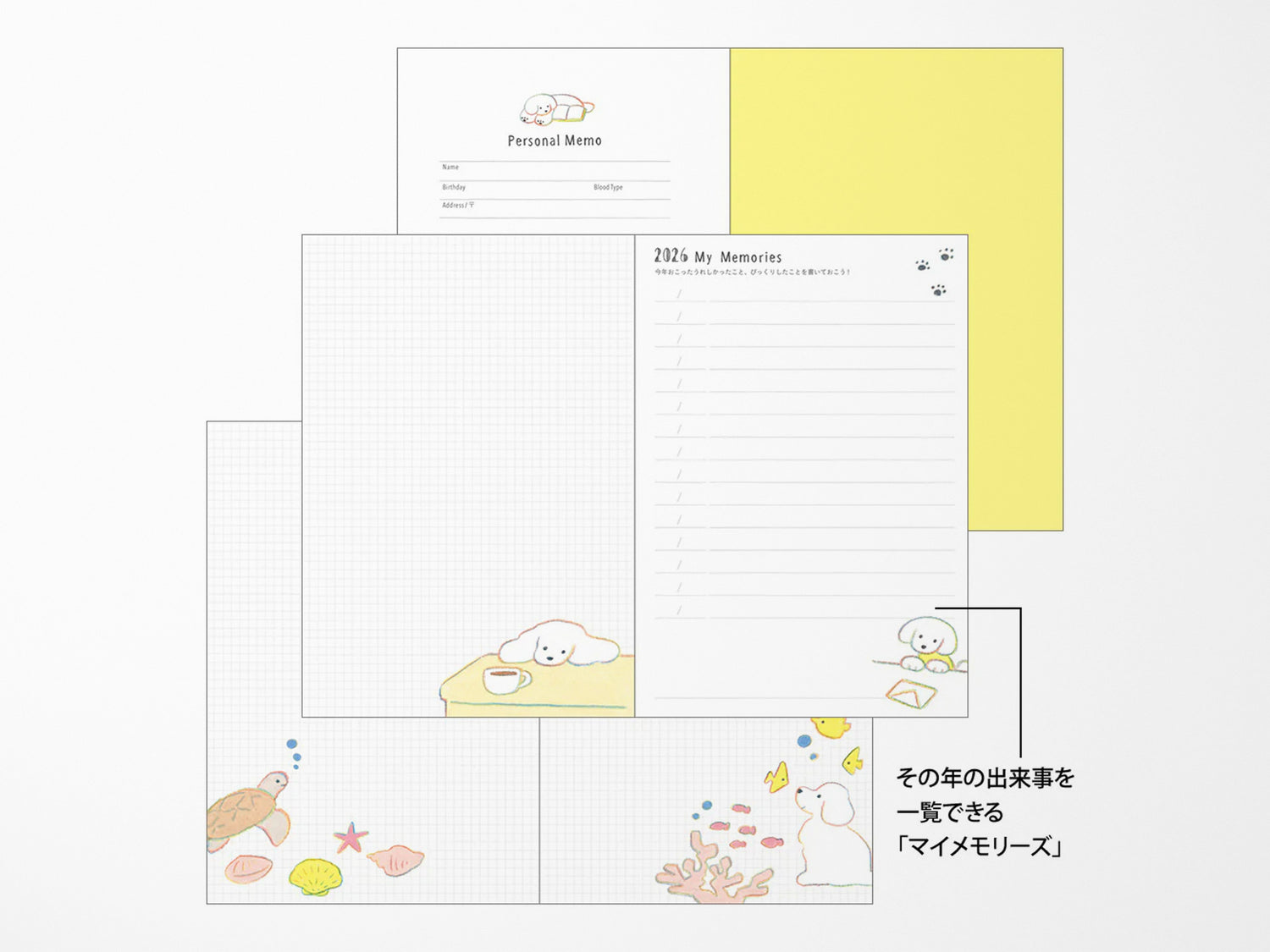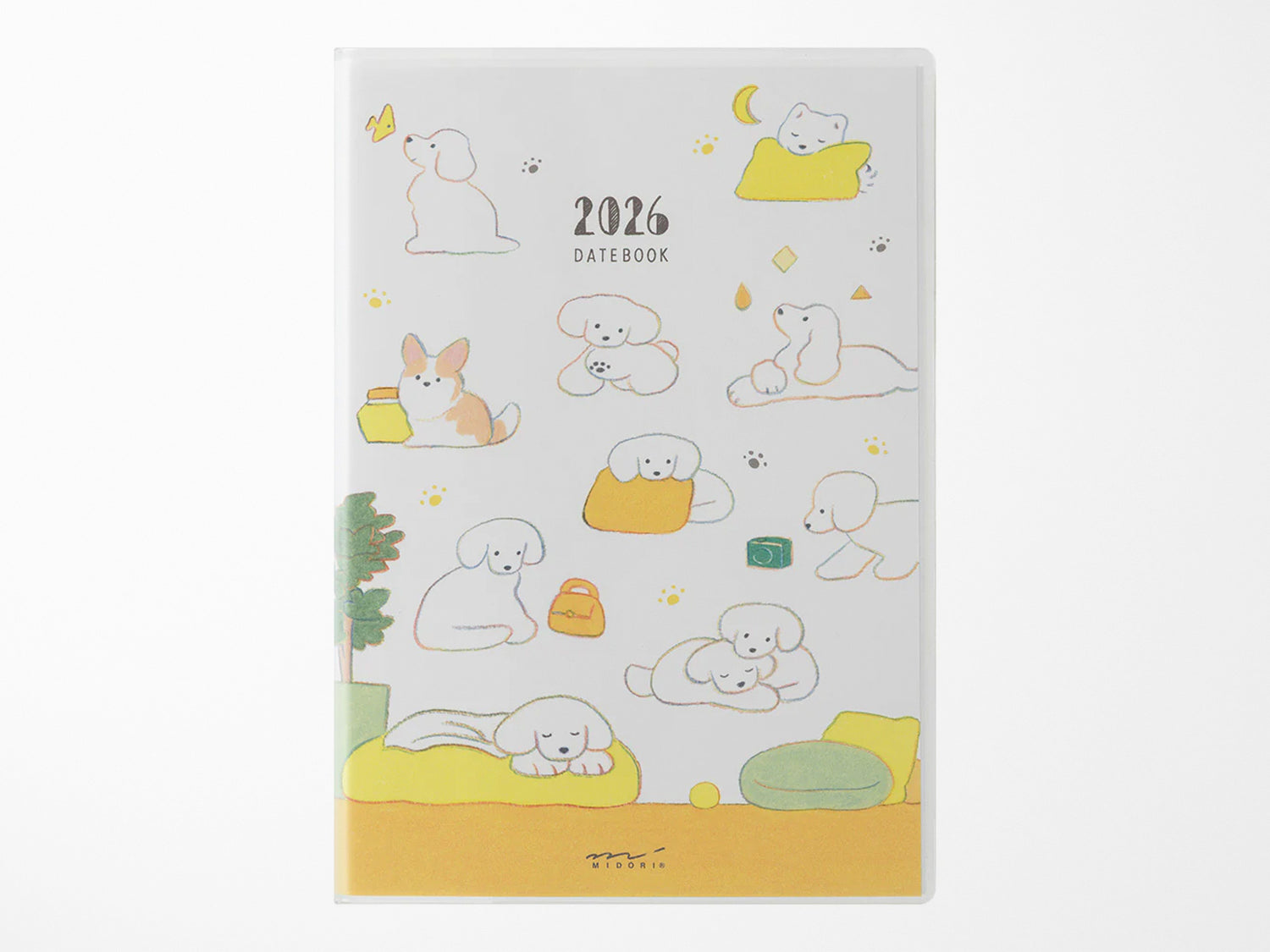The Midori 2026 Pocket Diary B6 - Dog is a pocket-sized diary with weekly and monthly layouts, dated January 2026 – March 2027. Features adorable dog illustrations by Natsumi Teraoka. The compact size is lightweight and easy to carry with you.