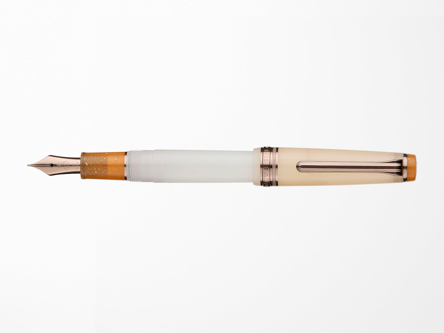 The nostalgic allure of antiqued gold-plated trim meets the elegance of a 14k gold nib, adorned with a delicate floral bouquet engraving. Offered in fine, medium-fine, and medium, these pens promise the unparalleled writing experience that only Sailor can provide.