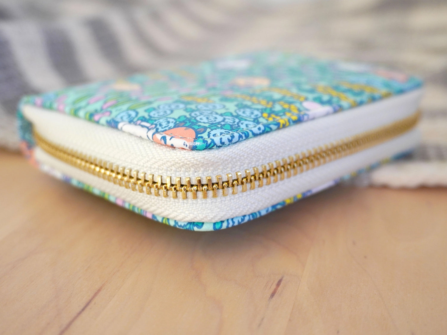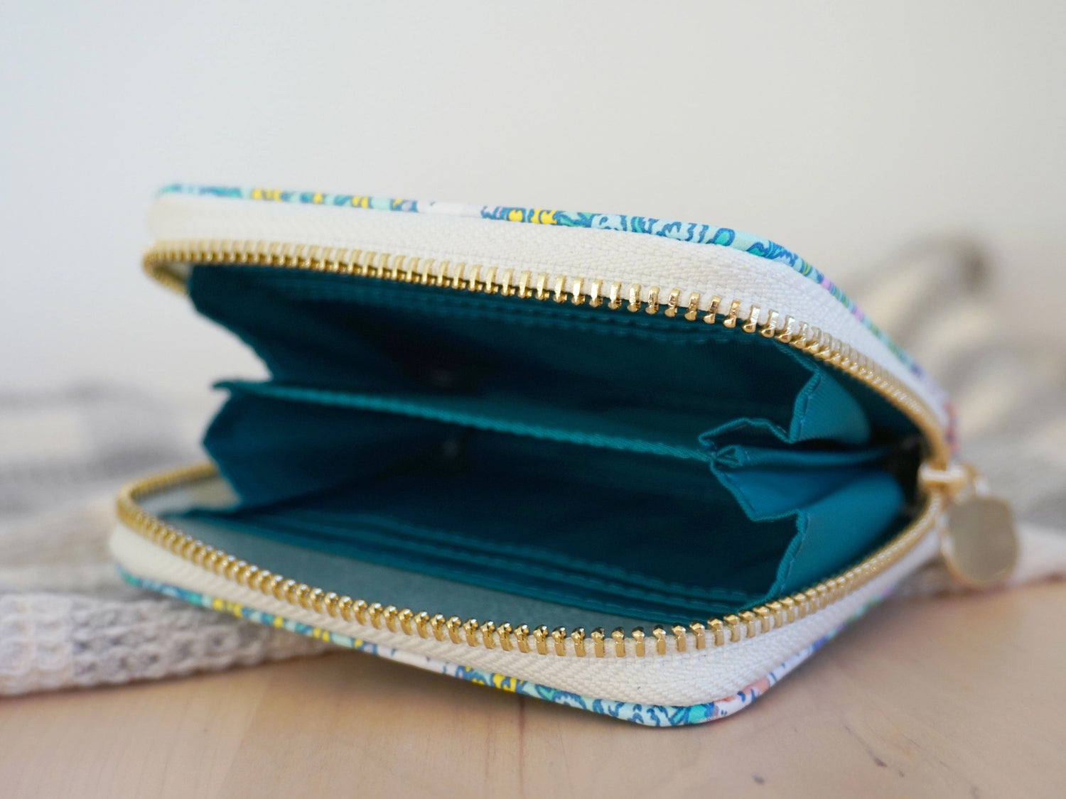 This wallet's minimal olive green lining complements its colorful surface design, while the beautiful foiled logo adds a touch of elegance. Its compact size makes it easy to carry around wherever you go - whether you slip it into your pocket or toss it into a small bag.