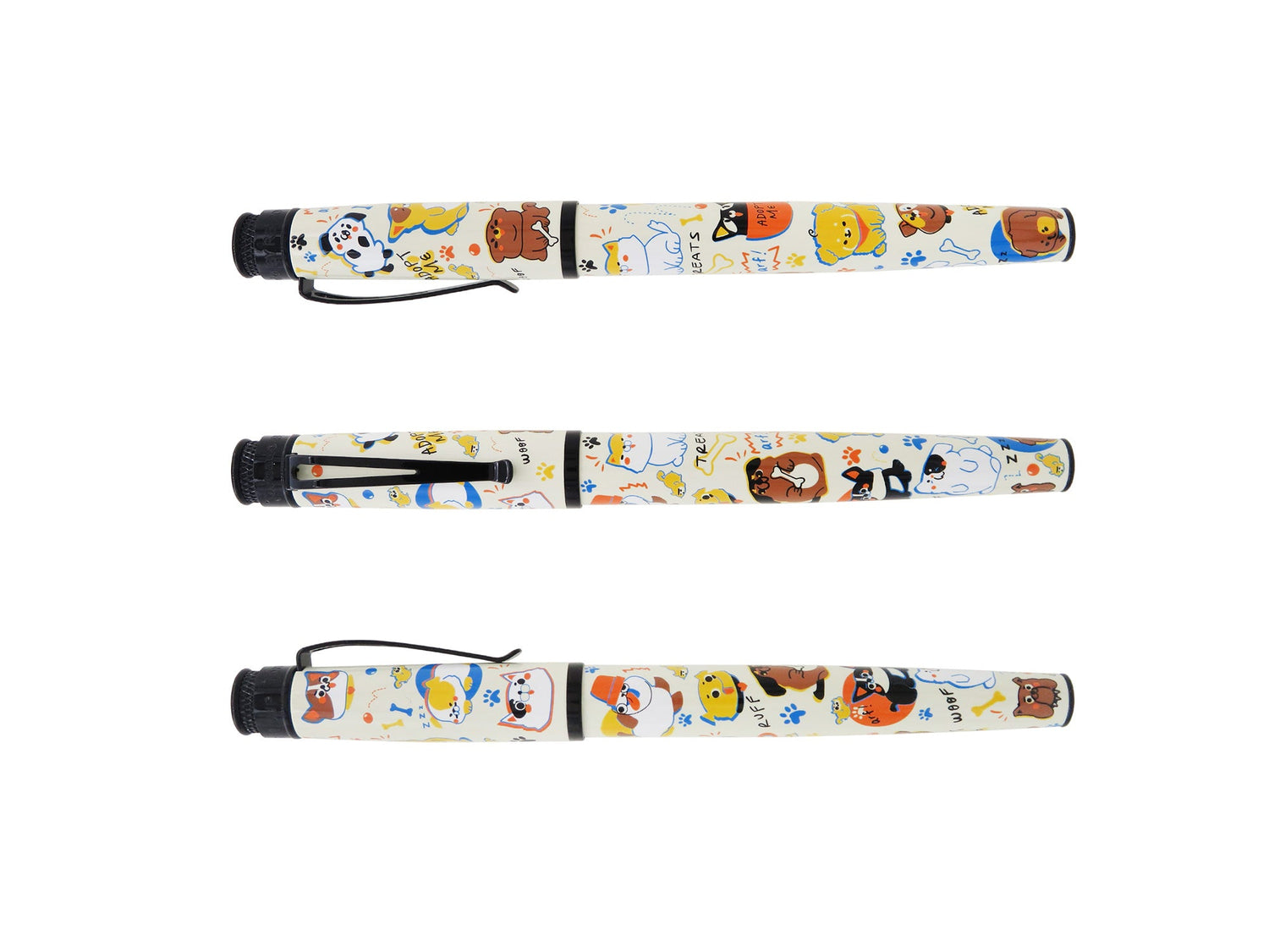 Introducing the latest Dog Rescue writing instruments from Retro51, featuring the most adorable dog illustrations. These charming pens showcase various breeds* in endearing poses and delightful expressions, adding a touch of whimsy to your writing experience. The barrels are adorned with vibrant colors over a cream base, finished with a gloss clear coat, and complemented by sleek Black Stealth trim.