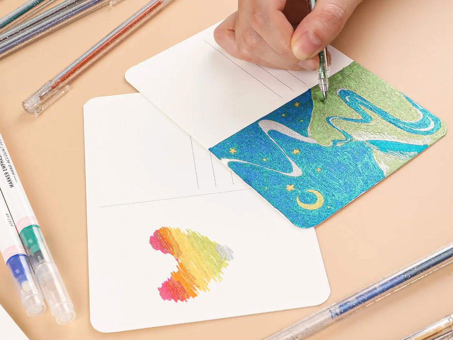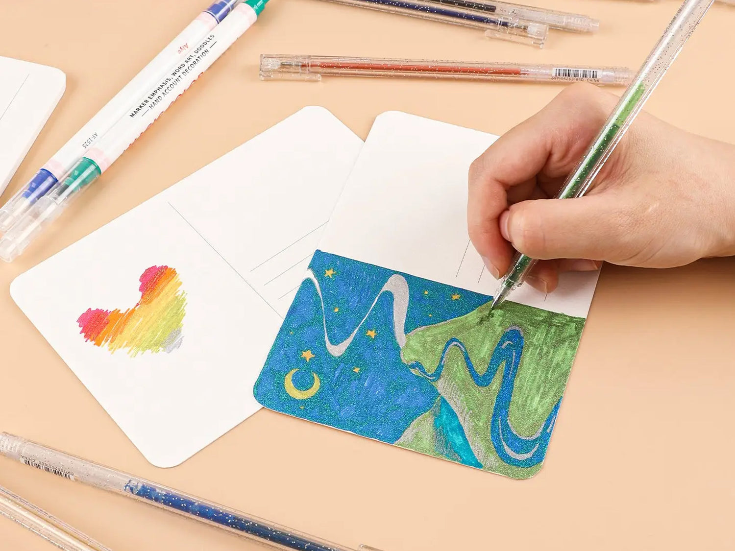 With 12 colors, each infused with glittering pigments, these pens make your artwork shine. Whether creating bold strokes or intricate designs, these pens enhance your art with radiant brilliance.