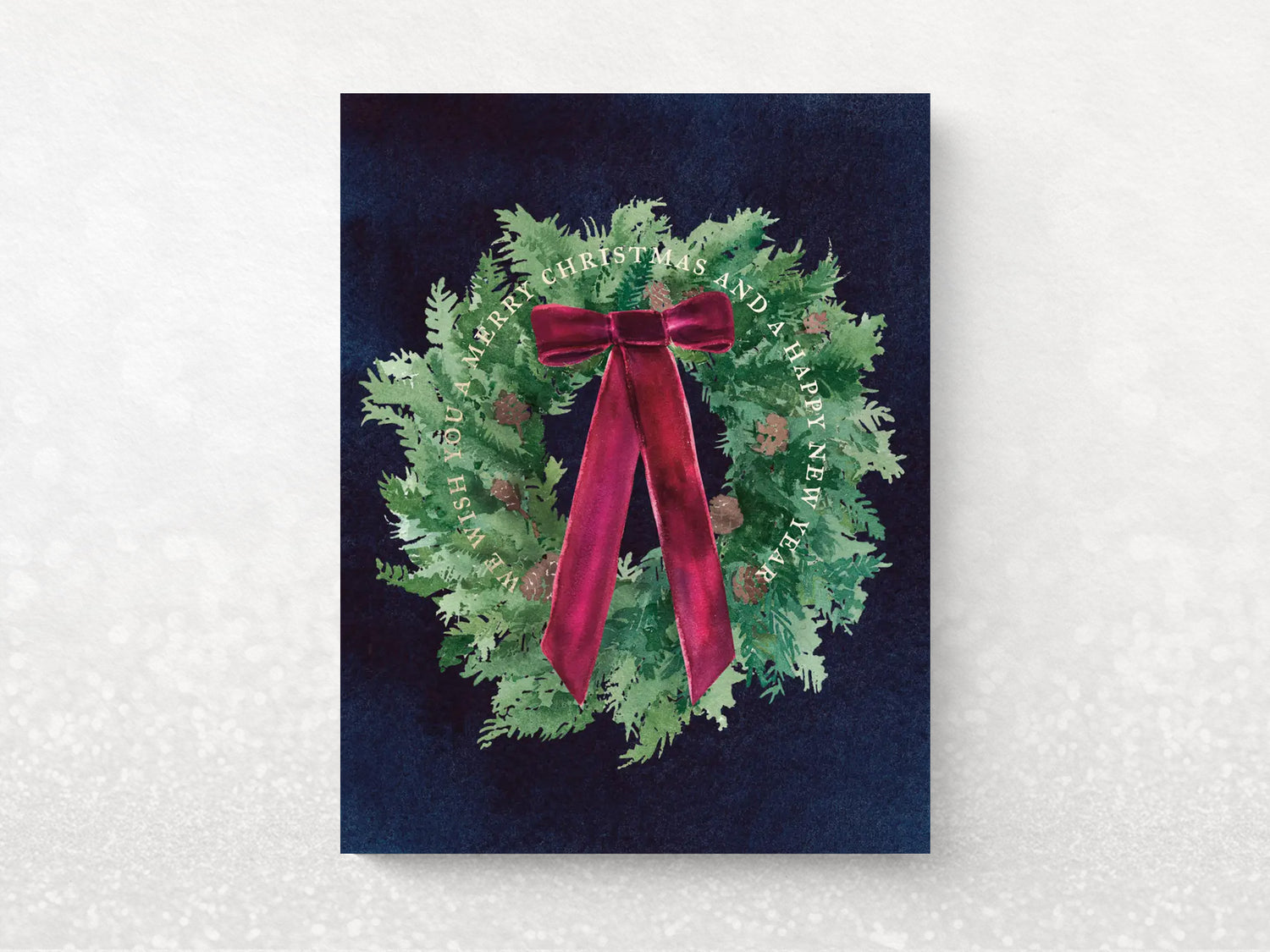 Velvet Bow Wreath Holiday Greeting Cards, Box of 6