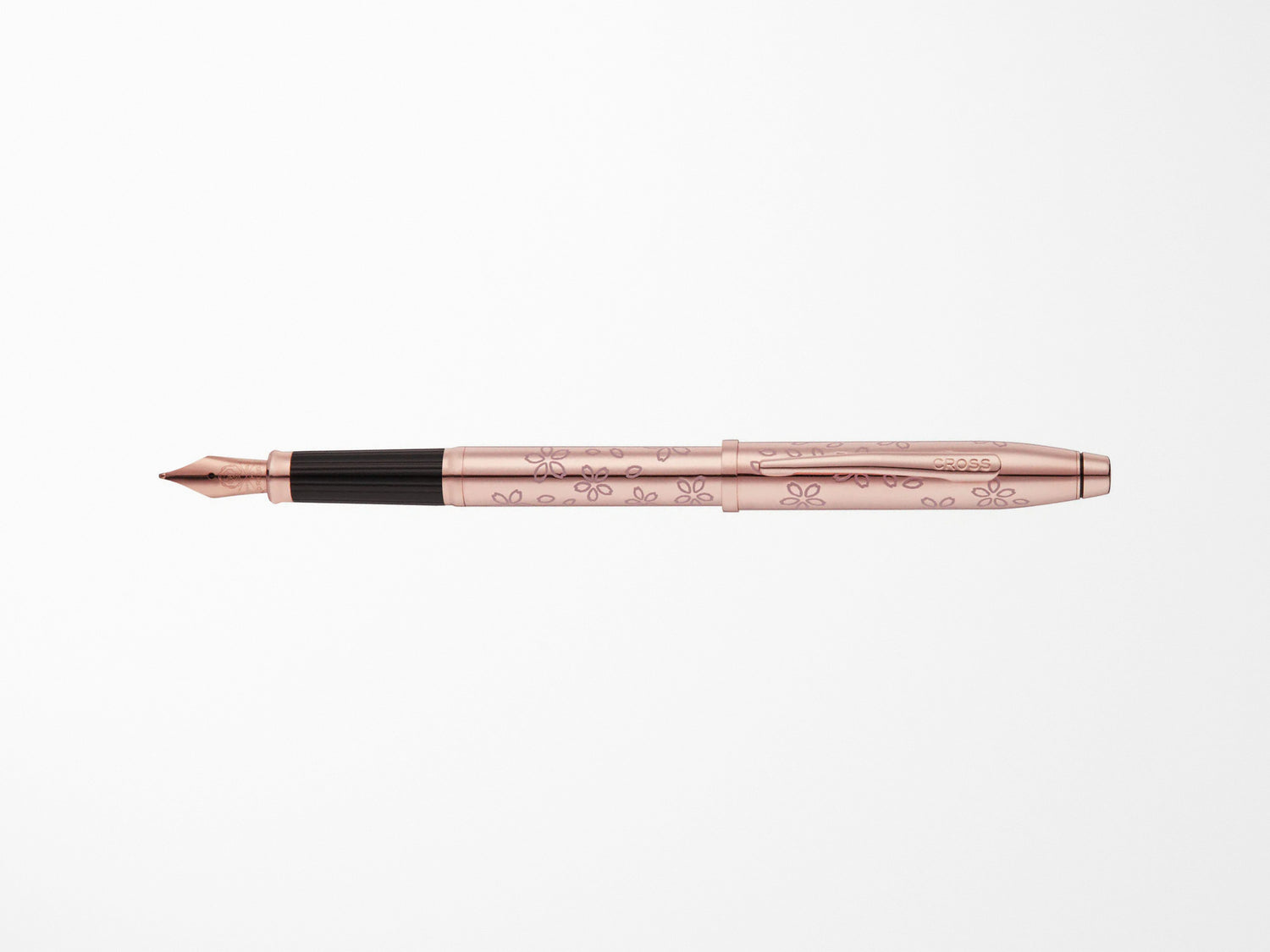 - Box contents: Cross Century II fountain pen, cherry blossom, F-nib, rose gold lacquered, stainless steel fittings with rose gold plated fittings, including 8921 black ink cartridge, includes premium gift box