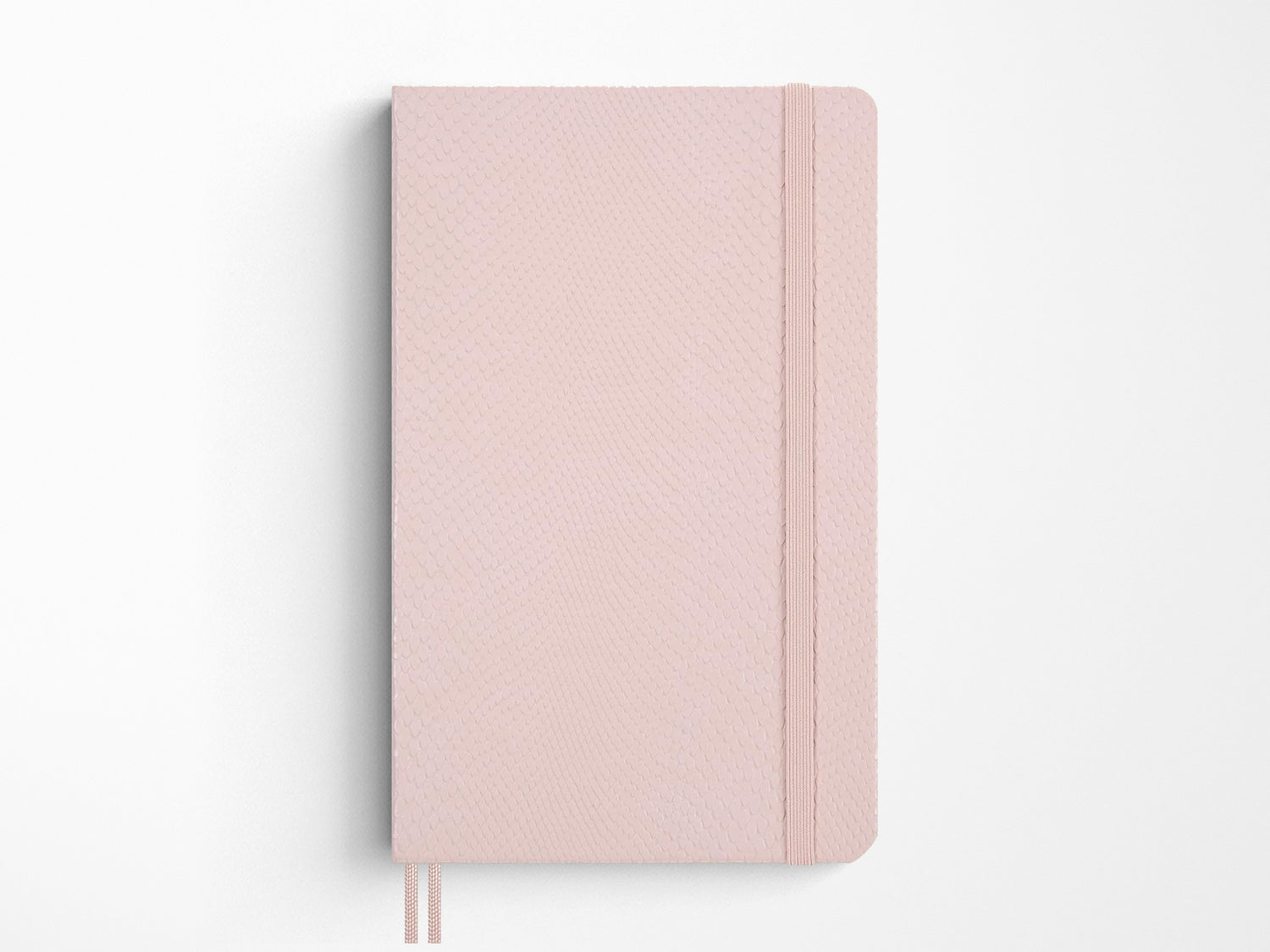 - Rounded corners, elastic closure and two bookmark ribbons