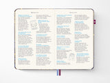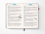 - Ruled and plain pages with inspiring quotes for notes, experiences and memories