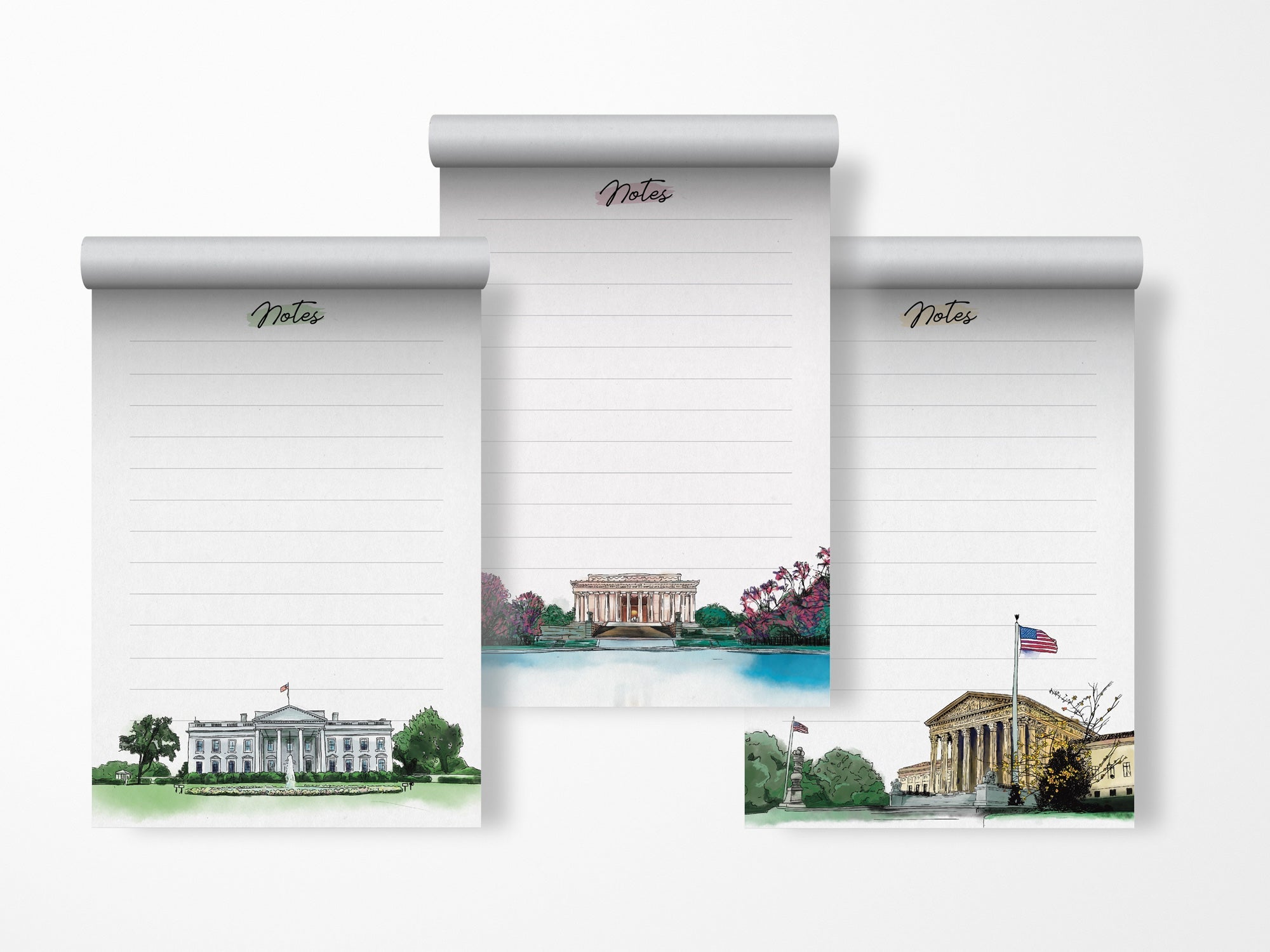 Elevate your note-taking experience with Washington DC notepads, boasting meticulously hand-drawn designs that pay homage to DC's iconic American landmarks.