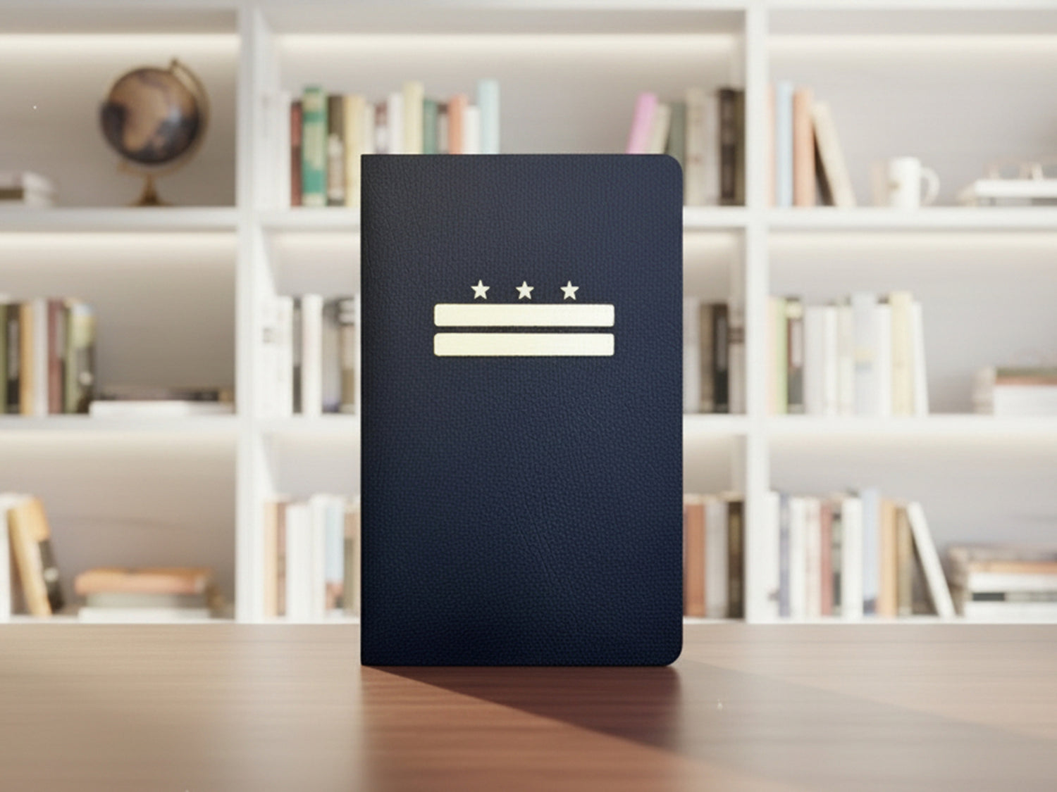 Celebrate Washington DC with a special edition notebook made by us in our Washington DC workshop and personalized with a gold foil DC Flag. Each notebook is individually handmade and hand-stamped with metallic foil in our Washington DC store. Bring one home as a souvenir of your visit or keep it on your downtown desk.