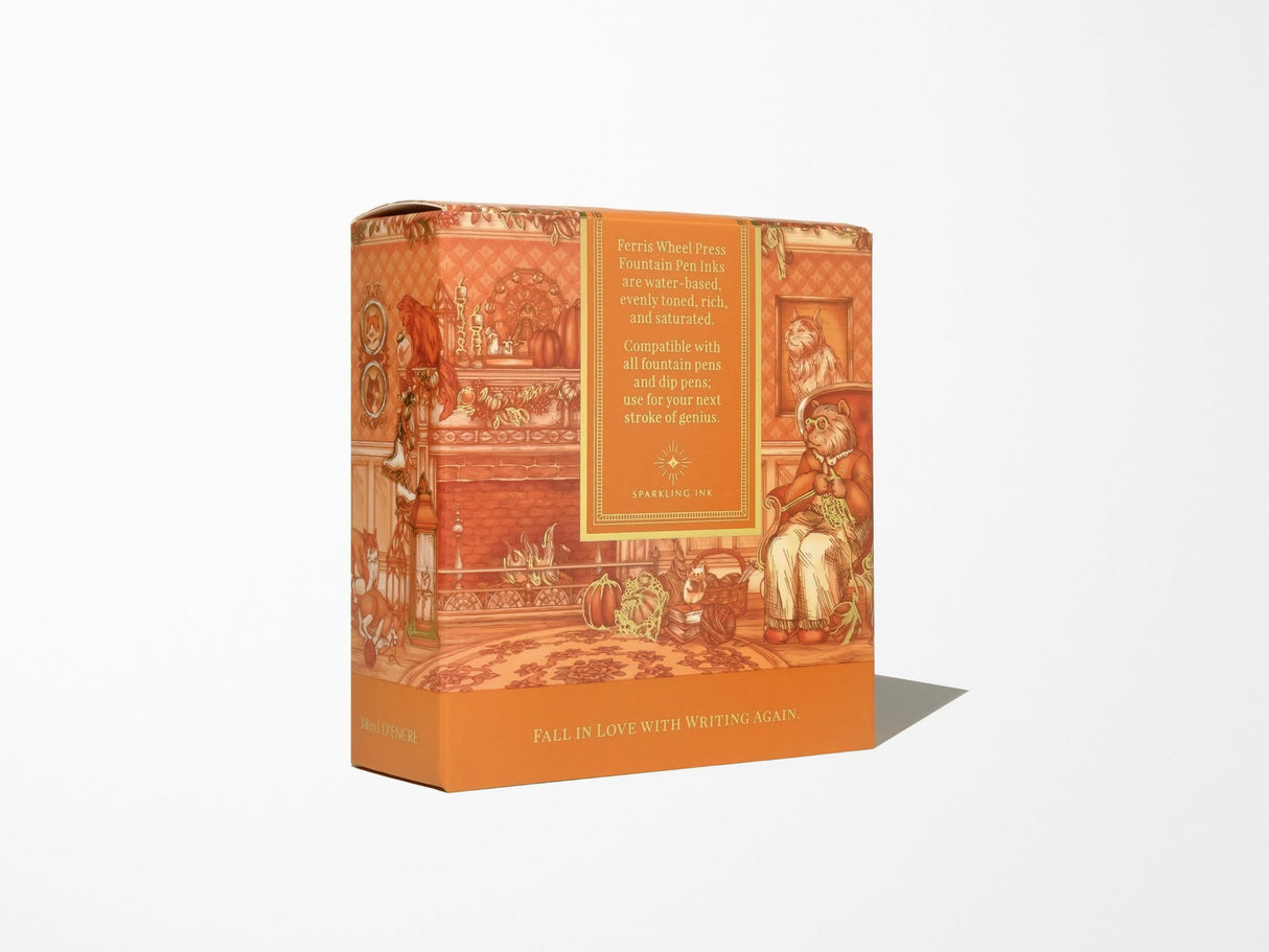 Nestled in Grandmother Grizzelda's cottage, join Bearnice as she relishes the blissful ambiance of the warm glow of the hearth. As the sun sets, snuggle into an overstuffed armchair with a steaming cup of tea, savoring the aroma of home-baked cookies and pumpkin-spiced pies. Bask in cherished memories, with walls that echo with laughter from generations past. Add warmth to your writings with this hearty amber ink that captures the embrace of family and joyous traditions.