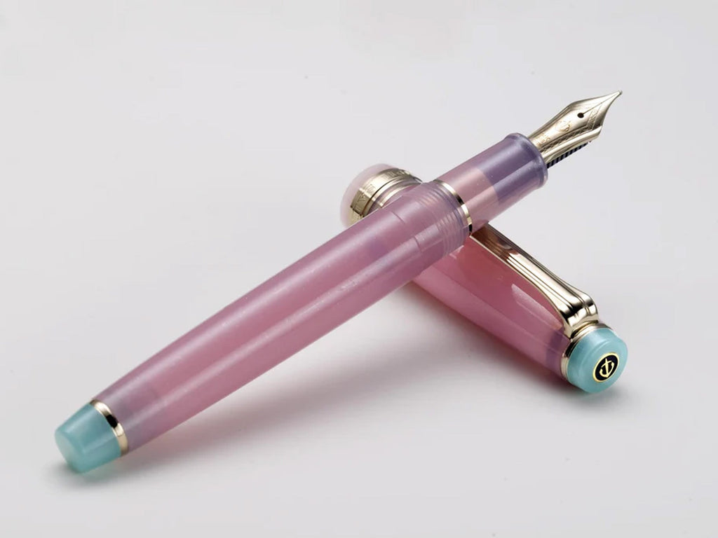 Japan observes the changes of time with celebrations for the spring and autumn equinox, and the summer and winter solstice. The Sailor Professional Gear Slim Solar Term Series shines a light on some of the finer traditions beloved across Japan on these special seasonal days. The Hagi Fountain Pen captures the spirit of the autumnal equinox with colors inspired by the autumn bush clover: a soft petal pink capped by seafoam green finials.