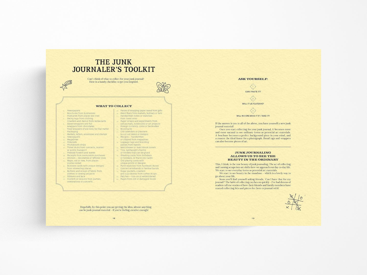 Whether you’re brand new to junk journaling or already hoard paper scraps and washi tape, this book will gently guide you through a year of playful, imperfect creativity: