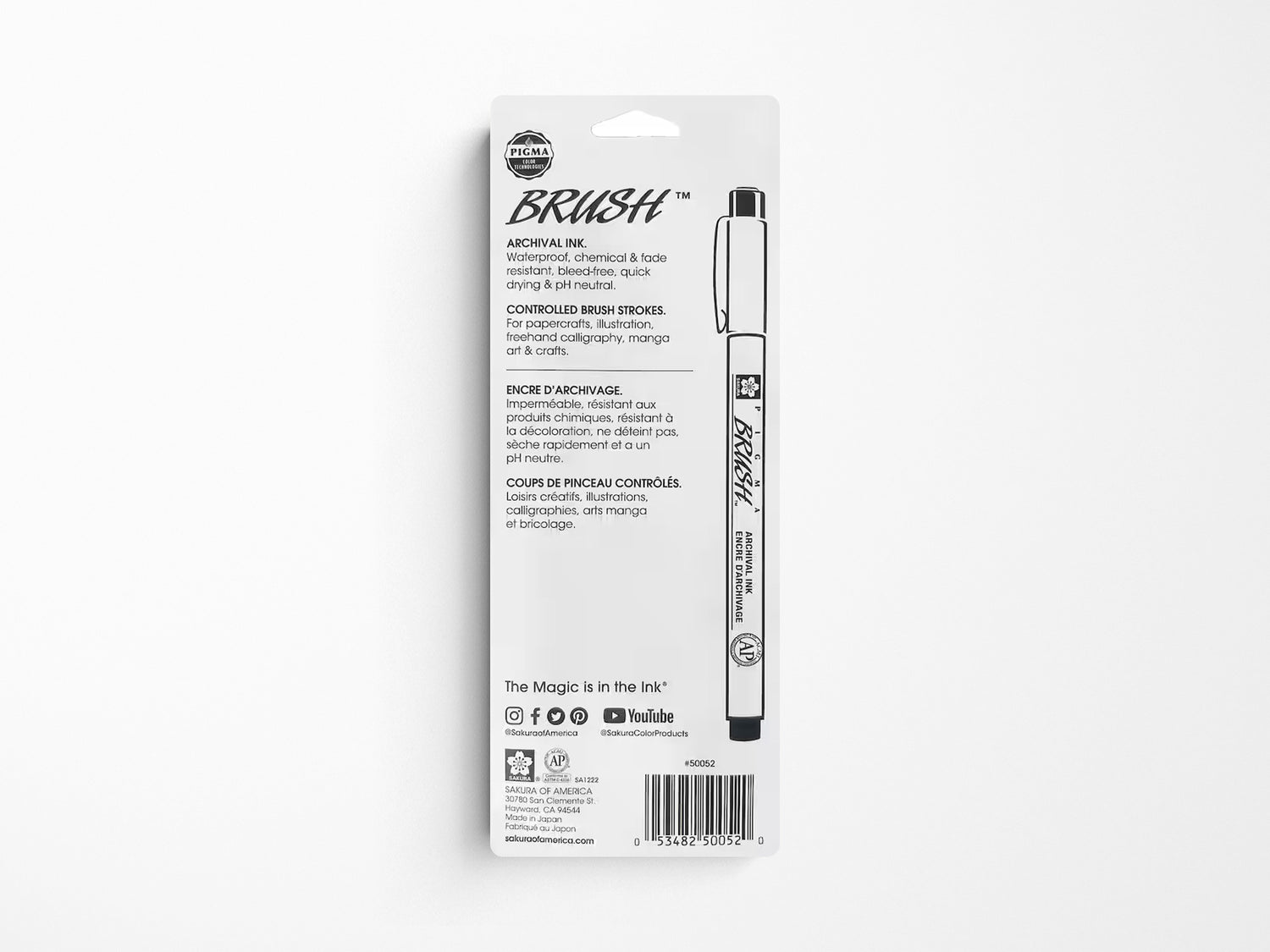 Sakura’s Pigma ink, invented and patented in 1982, has become the standard for what is defined as reliable, permanent, archival quality ink. Pigma Brush is a flexible brush-tipped pen that responds to instant changes in pressure or direction. This special formulation of pigment based ink is more complex and stable than dye based inks. Illustrators, manga artists, cartoonists, calligraphers, and hobbyists can put pen to paper and leave a mark that will last a lifetime.