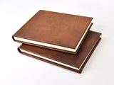 Our handcrafted chestnut Italian leather guestbook is destined to become an heirloom, filled with messages from visitors and guests. The guest book is hardbound in natural chestnut leather which has been hand-rubbed and polished for a glowing sheen and subtle patina. Pages are ivory laid, lined, and acid-free. Enough room for hundreds of signatures and messages.