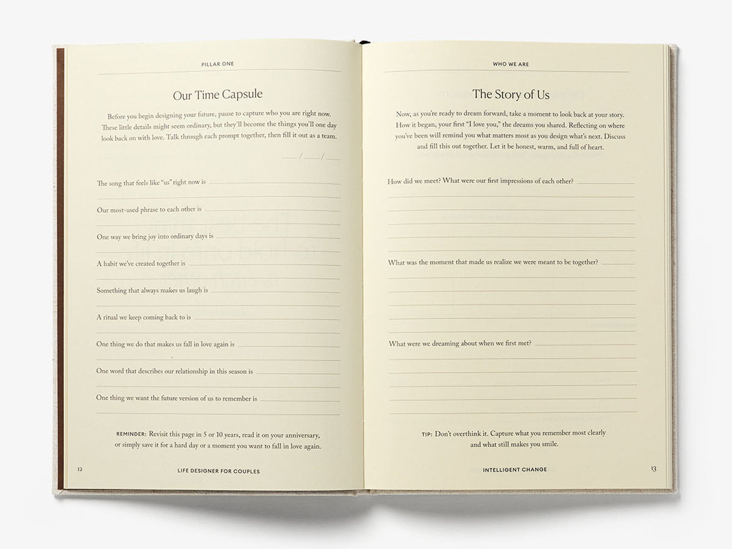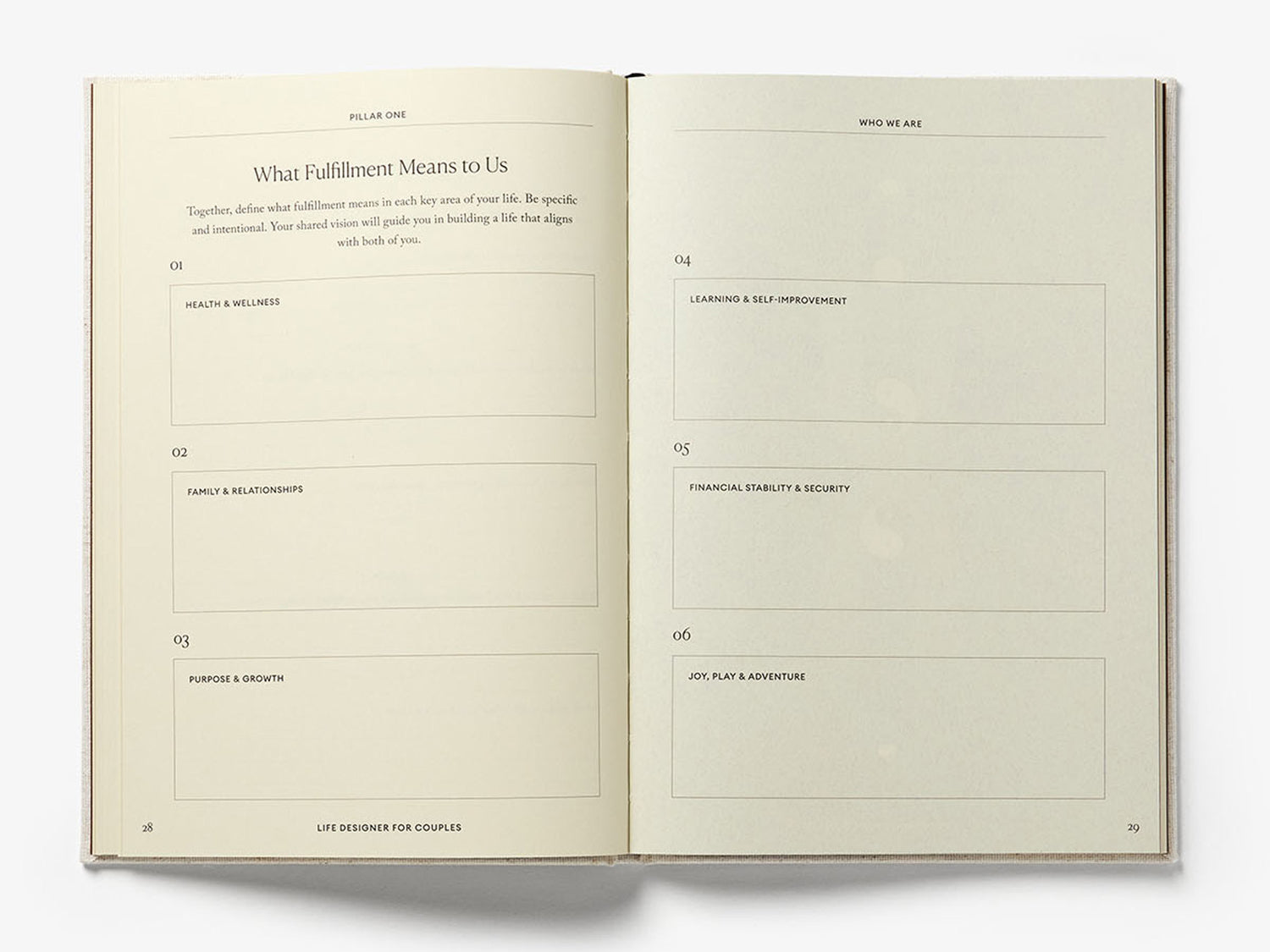 Life Designer for Couples is a guided journal designed for two people to create a 10-year vision for their life together. Through structured exercises and conversations, couples will align on their values, daily life, and long-term plans, so decisions about work, home, family, and priorities donβt stay vague or unspoken.