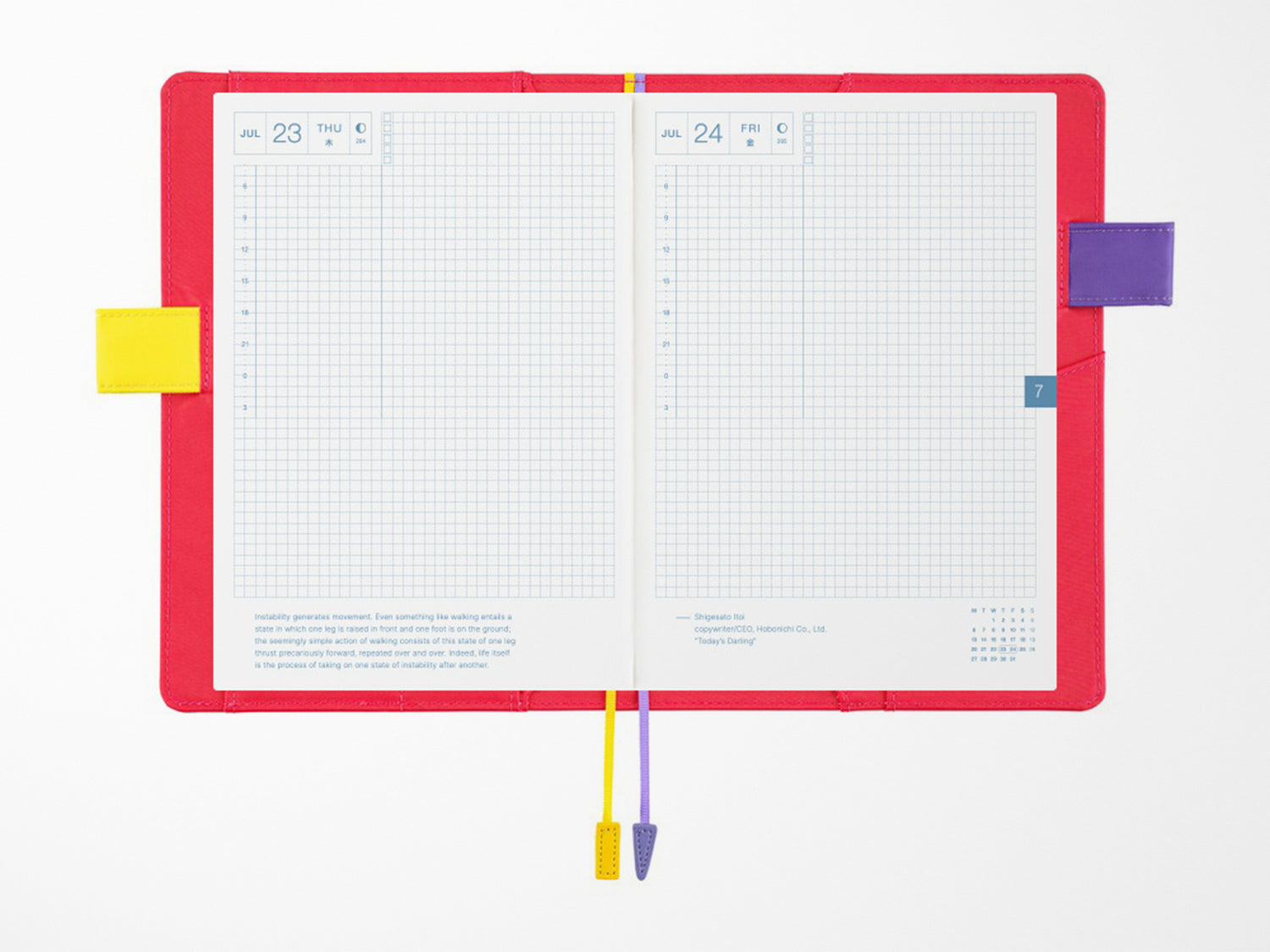 This is the ENGLISH version of the A5 sized Hobonichi Techo Cousin planner with monthly, weekly and daily pages.