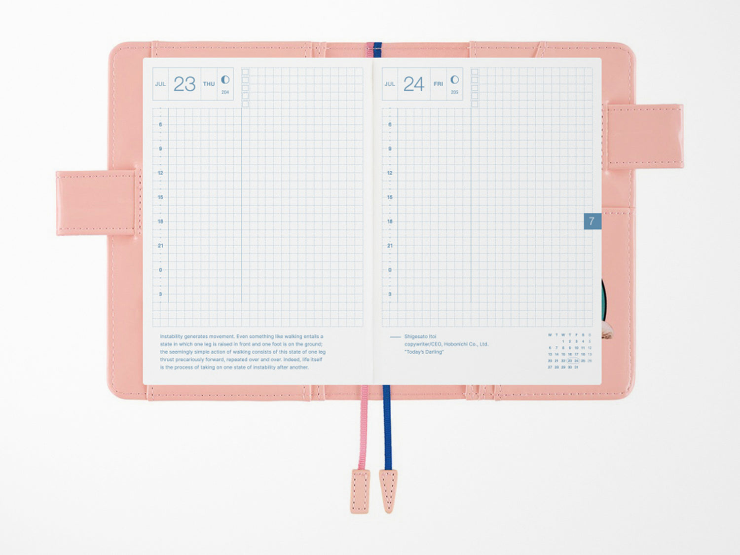 ONE PAGE PER DAY - Each day has its own page with ample blank space to help you use the techo any way you like. The 3.7 mm graph paper provides optimal writing comfort. The line colors are subtle enough so users can either customize it to their own layout or ignore it completely. This book includes inspirational quotes on each daily page in Japanese. The book uses thin and light yet durable Tomoe River S paper which provides a high page count with a compact design.