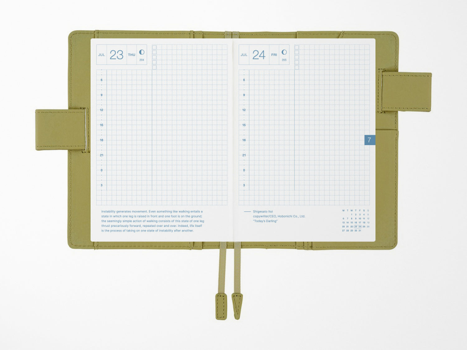 ONE PAGE PER DAY - Each day has its own page with ample blank space to help you use the techo any way you like. The 3.7 mm graph paper provides optimal writing comfort. The line colors are subtle enough so users can either customize it to their own layout or ignore it completely. This book includes inspirational quotes on each daily page in Japanese. The book uses thin and light yet durable Tomoe River S paper which provides a high page count with a compact design.