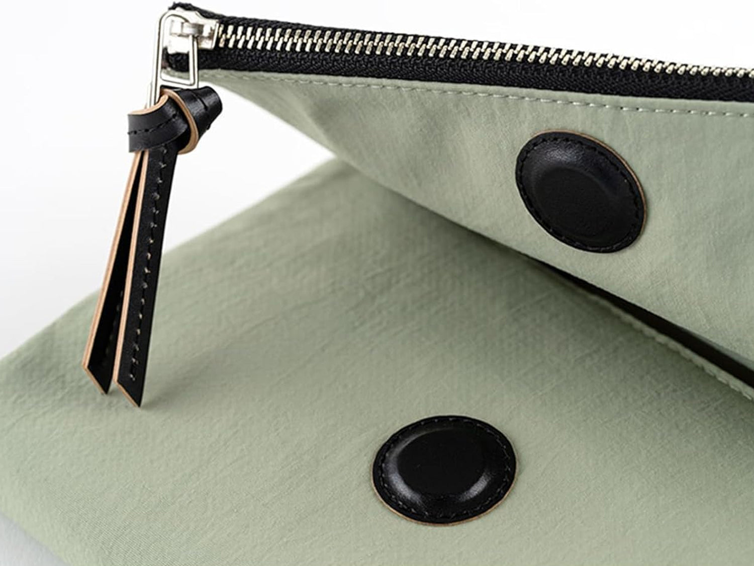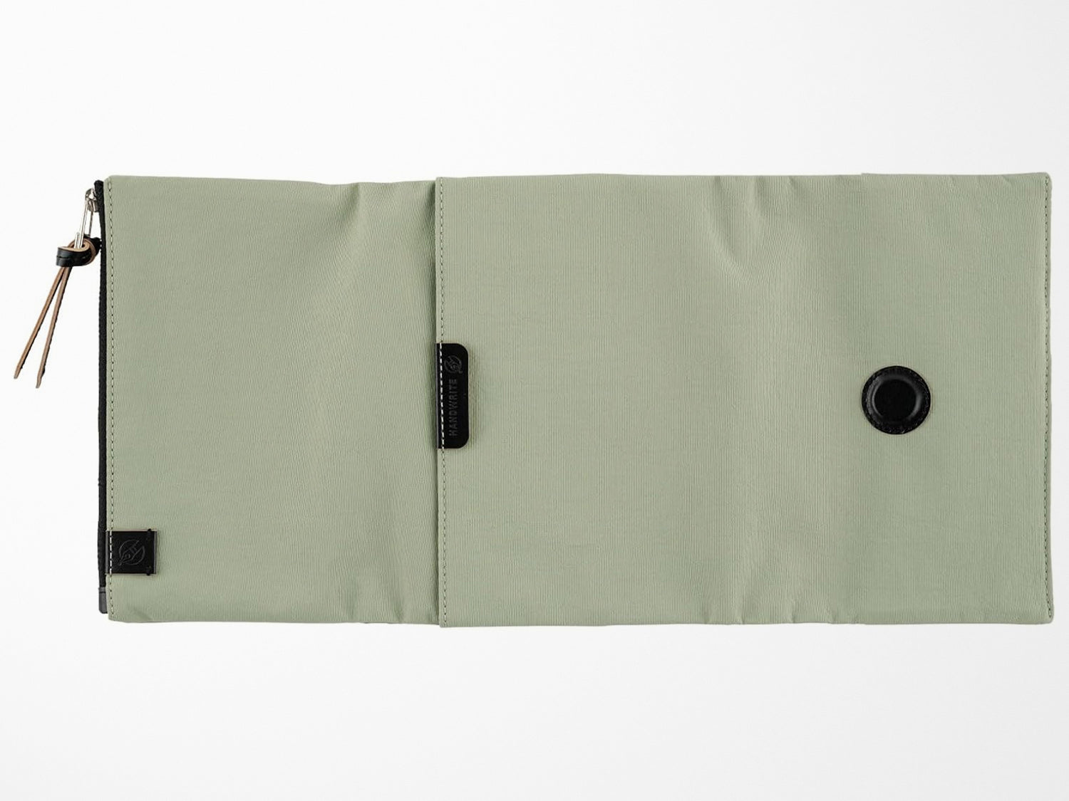 The Tragen tri-fold design is a cover to carry stationery and other useful items along with your techo. The material is an elegant and soft nylon with a leather zipper pull on the front. The gusseted pocket with a zipper closure provides enough storage to carry as many pens and necessary utensils as you like. The cover interior has lots of storage, with a leather pocket on the right-hand side and four card pockets on the left-hand side.