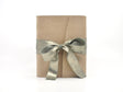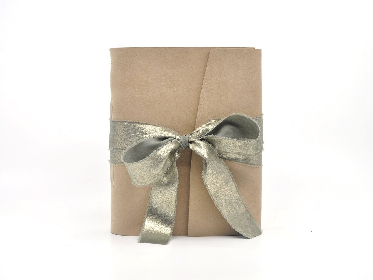 The journal is finished with a flap and a metallic gossamer ribbon that ties around the book block to hold the cover closed when you are not writing.