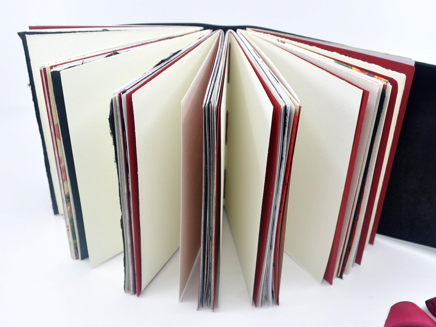 Jenni's English Garden leather journal features rich black leather and assorted papers combined with meticulous traditional craftsmanship.