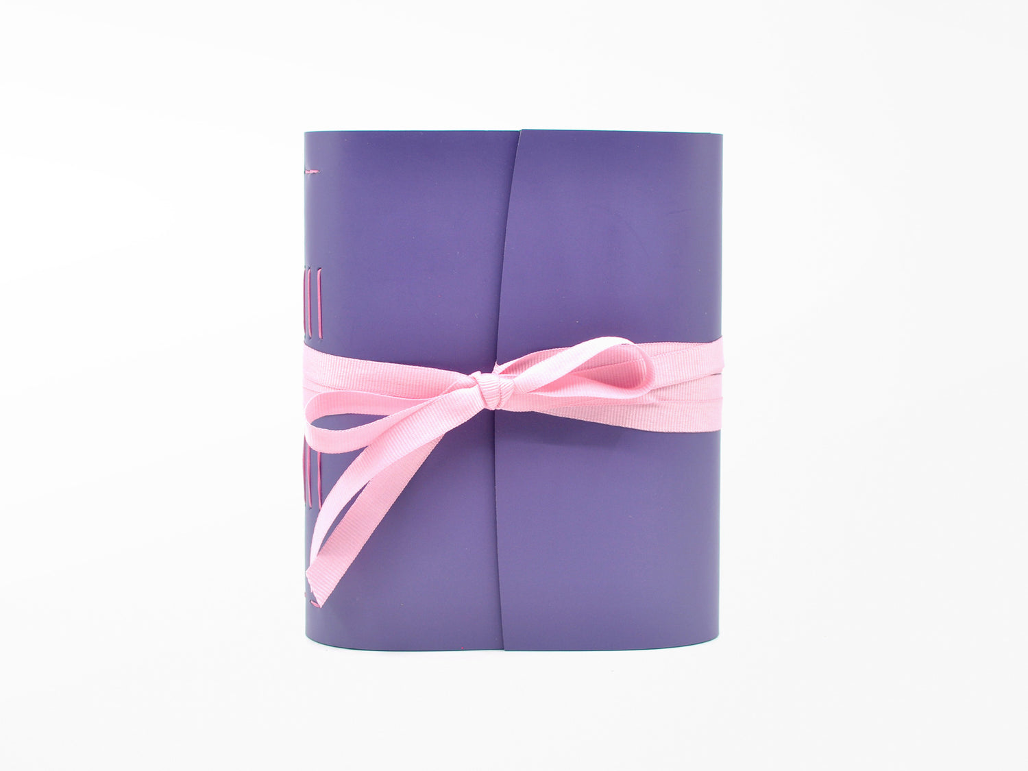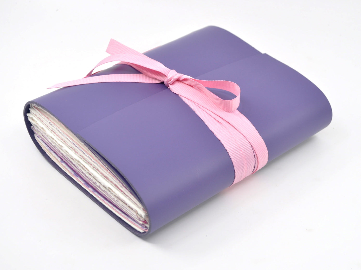 The journal is finished with a flap and a pink grosgrain ribbon that ties around the book block to hold the cover closed when you are not writing.