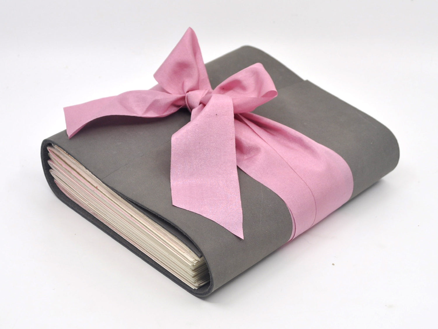 The journal is finished with a flap and a pink taffeta ribbon that ties around the book block to hold the cover closed when you are not writing.