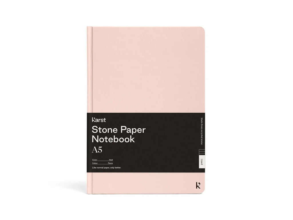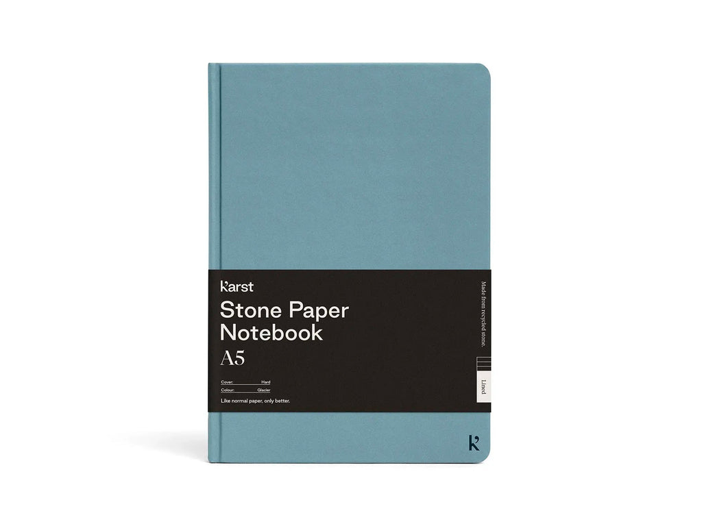 This tree-free A5 Hardcover Notebook is made from high-quality, sustainable, and recyclable stone paper. With an expandable back pocket, divider ribbon or bookmark, elastic band, and lay-flat binding.
