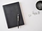 Our Italian Leather notebook is A5 sized, comfortable for note taking, list making, journaling, and writing of all kinds. The soft recycled leather cover is flexible. Bright white ruled pages have a light cotton texture.