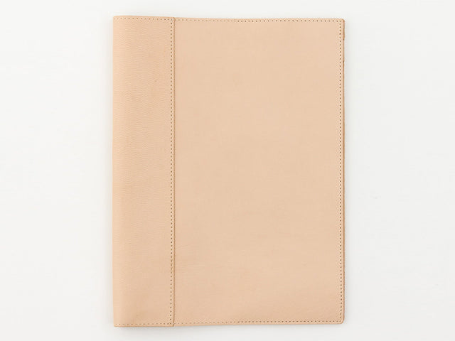 A leather cover to protect and personalize your Midori MD notebook. The cover is crafted of natural tanned goatskin and wraps around your A4 notebook to provide protection and a bit of added style.