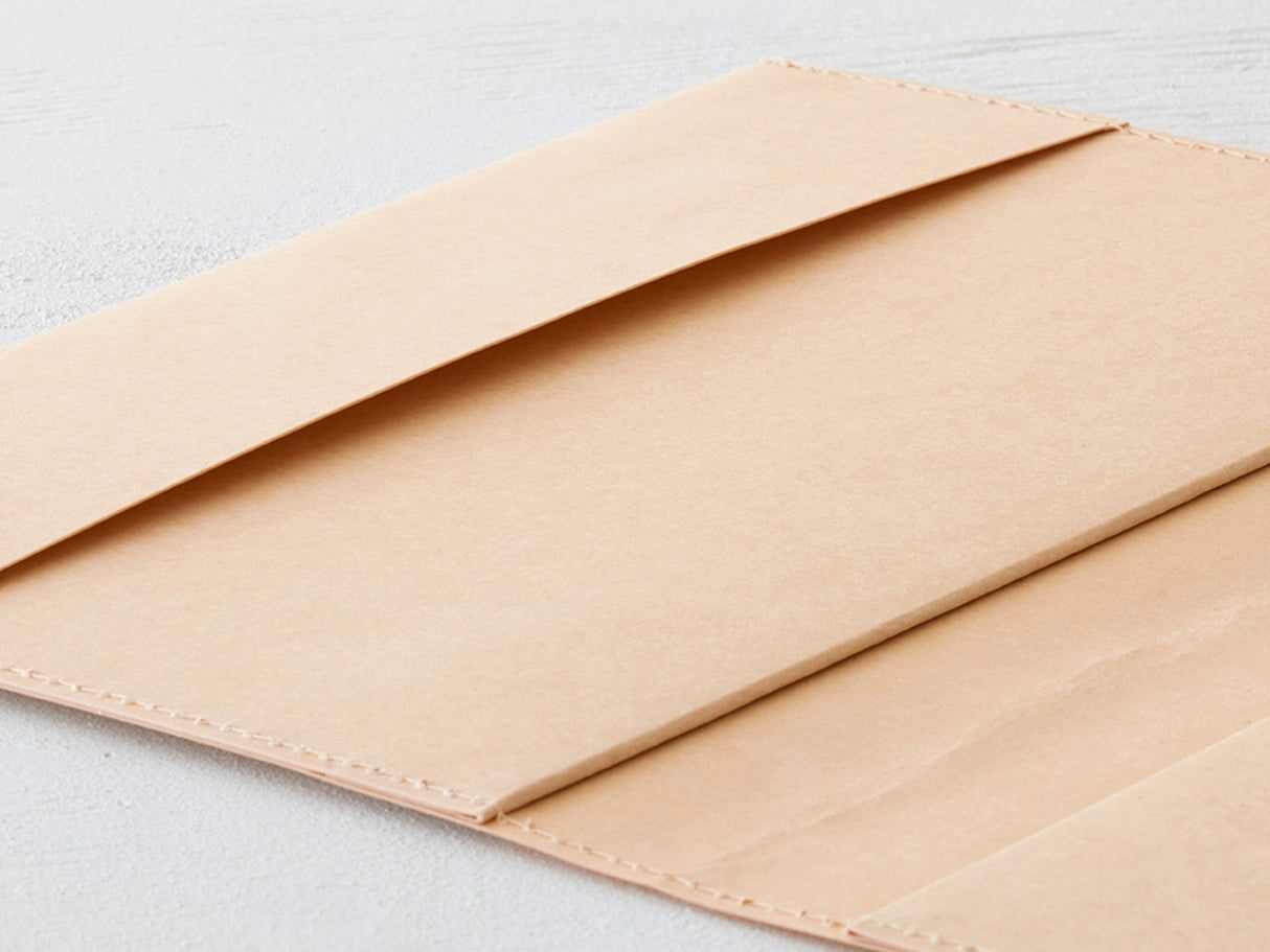 A minimalist cover to protect and personalize your Midori MD notebook. The cover is crafted of heavy paper and wraps around your A5 notebook to provide protection from dust and dirt.