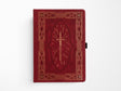 A bold, medieval-inspired notebook designed for adventurers at heart—perfect for journaling, planning, or capturing your next great story. Featuring a rich crimson vegan leather cover with intricate gold-foil detailing and a radiant sword centerpiece, this notebook feels like a treasured tome pulled from a castle library.