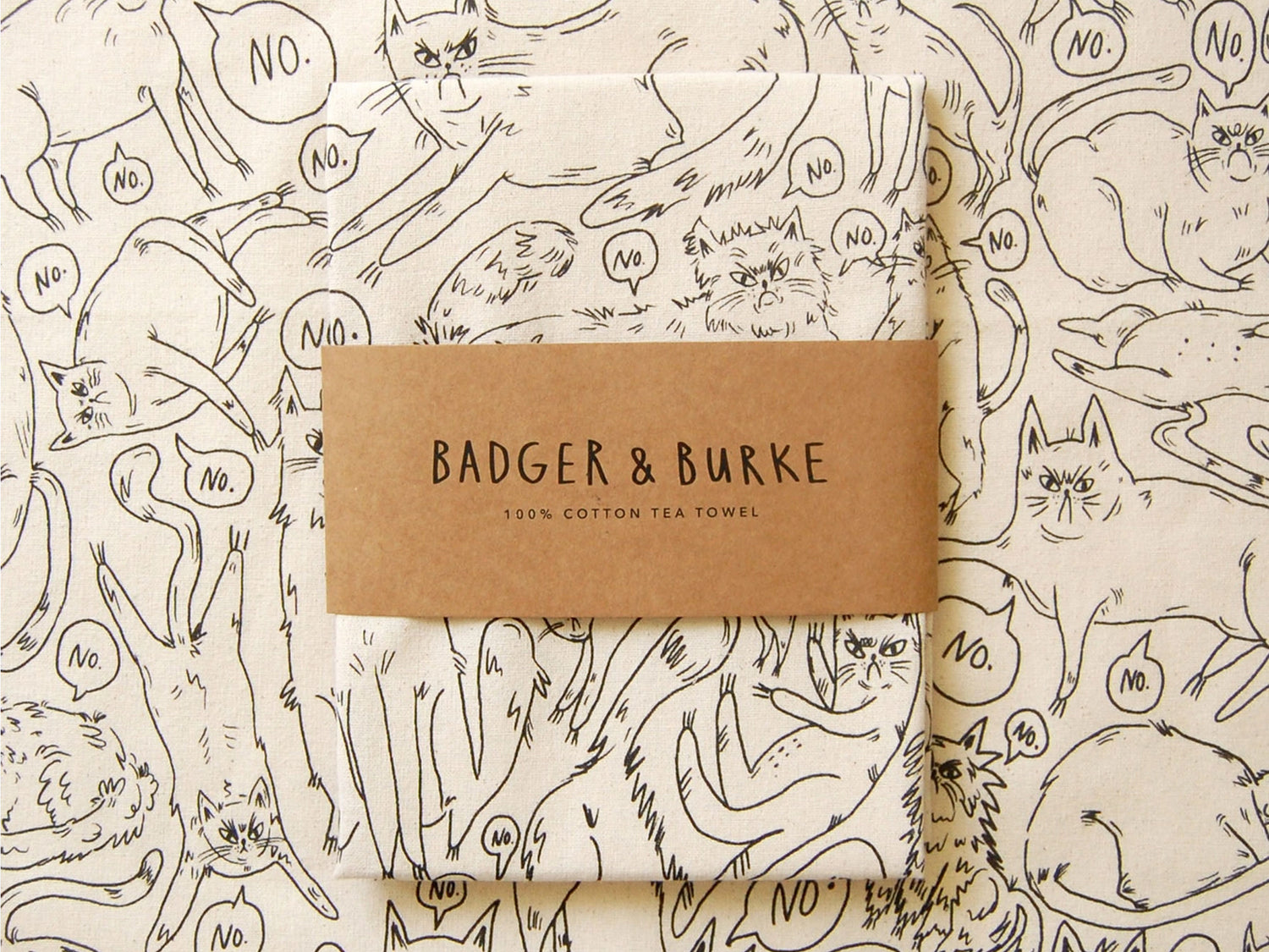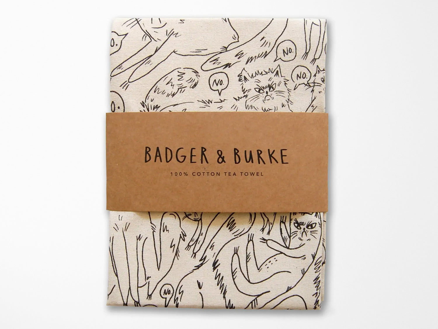 Black and white cat screen printed tea towels are perfect for brightening up any kitchen space. These towels are 100% cotton and feature a hanging loop on the reverse side