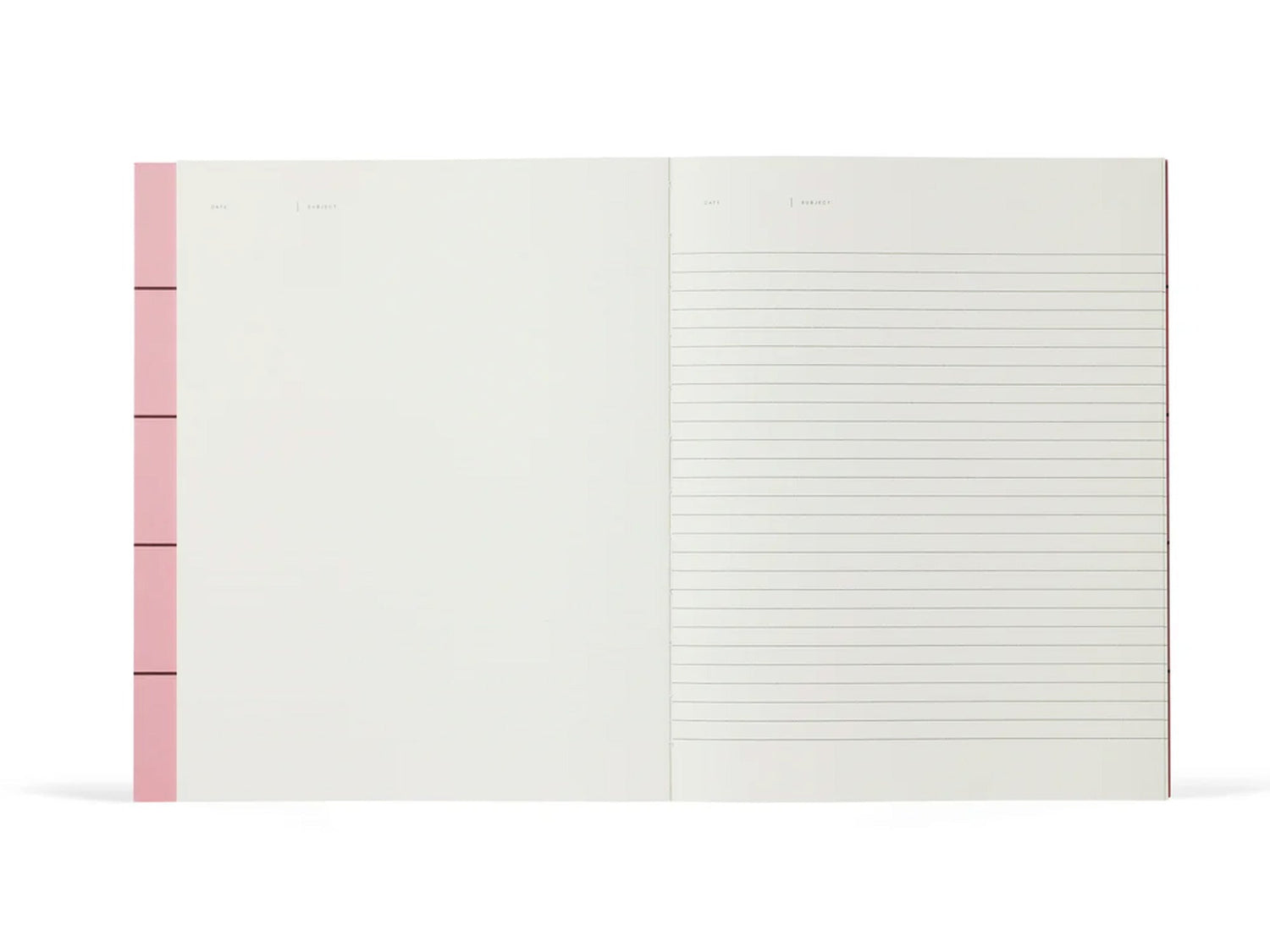 The open notebook presents a blank left page, with a lined right-hand side, leaving space for sketches, mindmaps, notes and doodles.