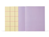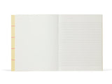 The notebook is stitched along the back so that, when open, the notebook presents a perfectly flat surface, with a seamless transition between left and right.