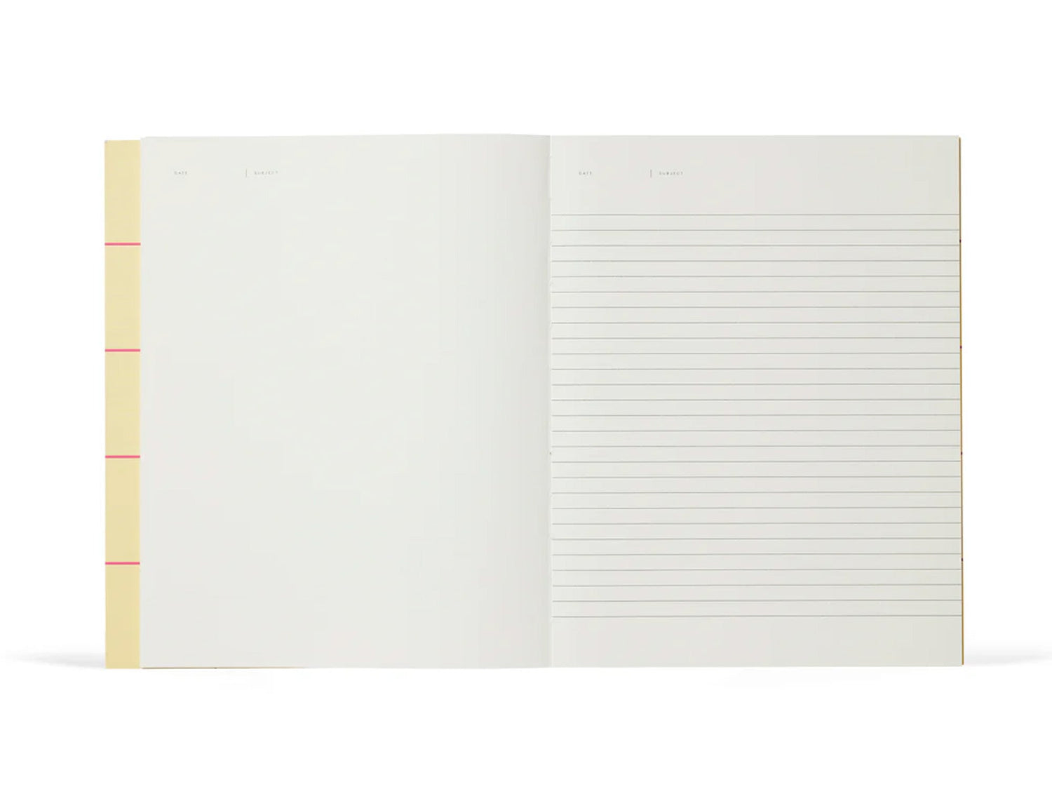 The open notebook presents a blank left page, with a lined right-hand side, leaving space for sketches, mindmaps, notes and doodles.