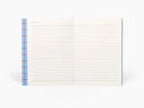 The open notebook features ruled sheets - leaving space for sketches, mindmaps, notes and doodles.