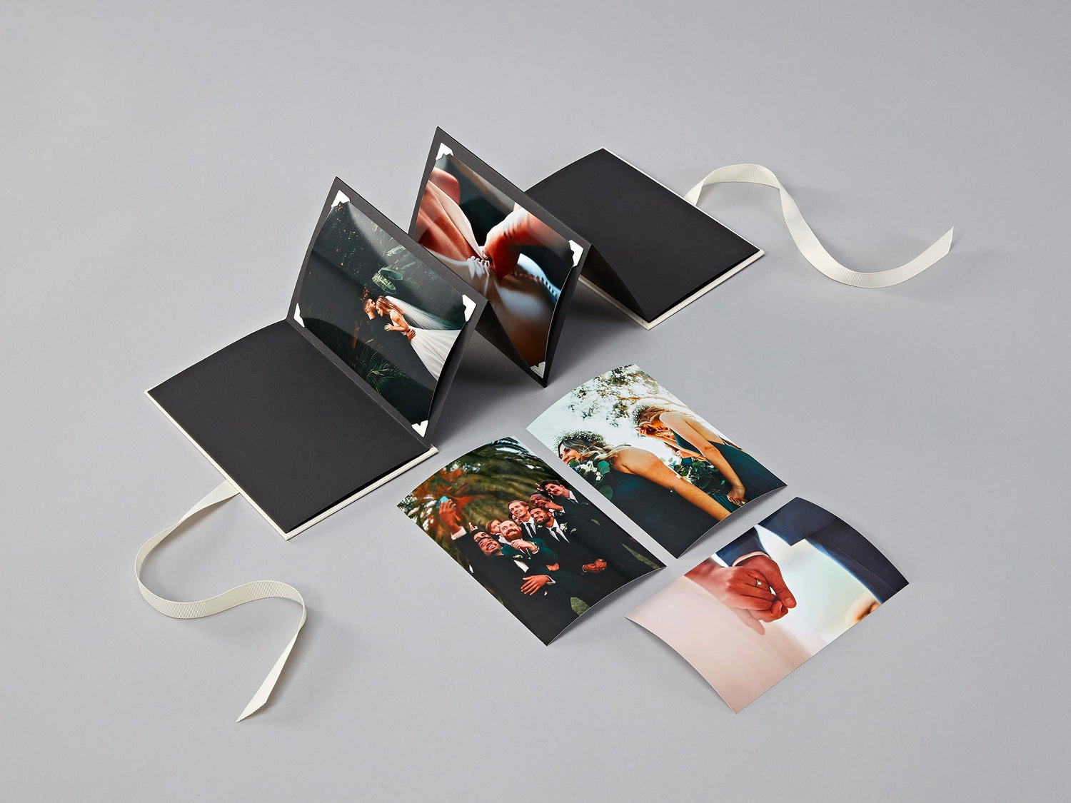Classic Wedding Leporello Photo Albums in ivory bookcloth are a fun little way to store and protect your photos and keepsakes.