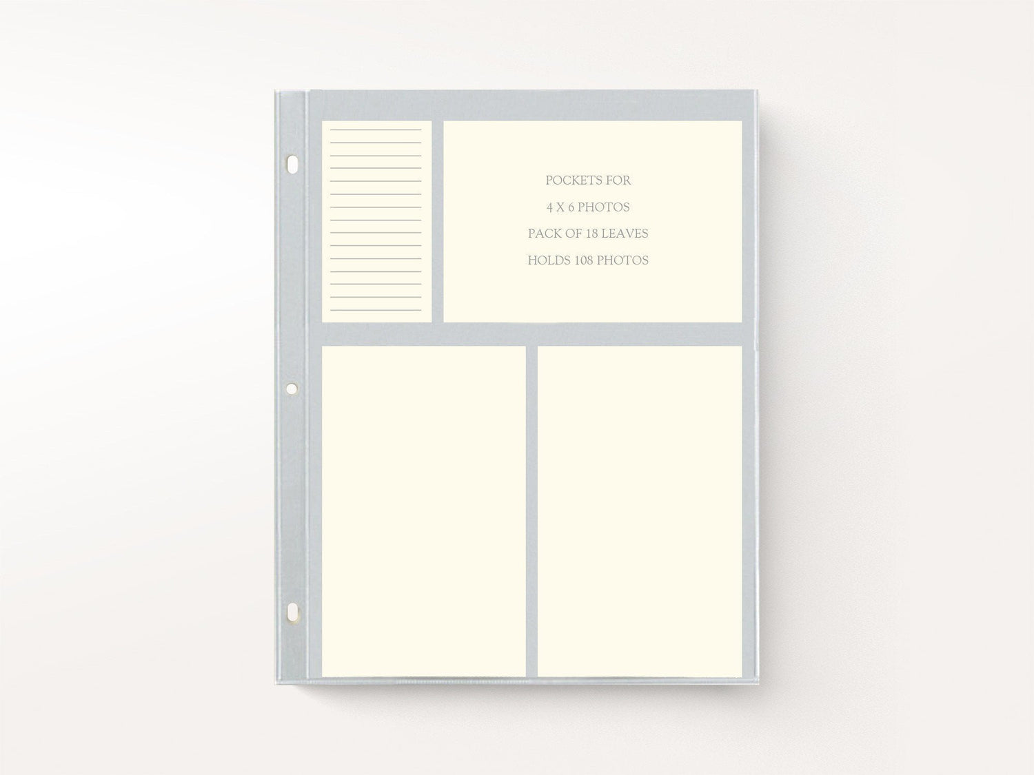 Refill set of 10 leaves for 3-ring binders. Archival quality polypropylene pages are heavyweight and super clear. Won't wrinkle or harm photos.