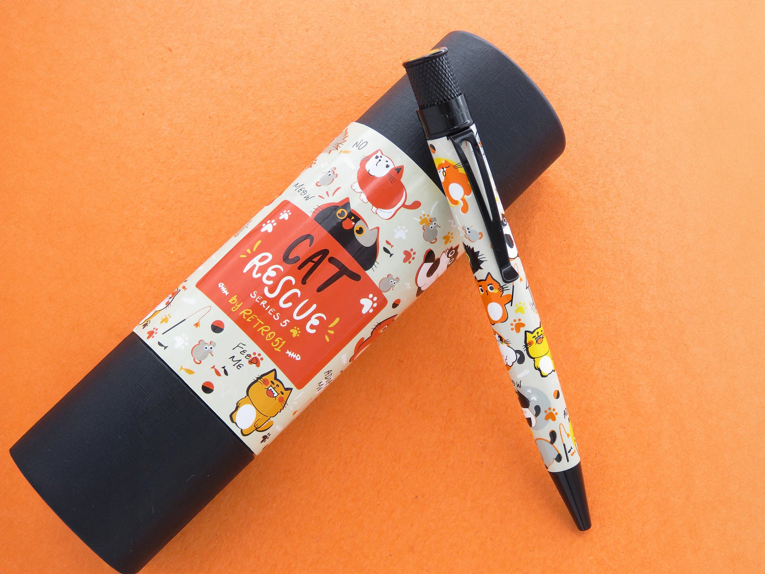 Embrace the playful and lovable spirit of cats* with the newest Cat Rescue writing instruments from Retro51. These Tornados showcase irresistibly cute cat illustrations – where every stroke becomes a delightful expression of feline charm. Whether writing with the twist-top rollerball or the fountain pen, you'll find the same playful and lovable spirit of cats infused into your daily writing experience.