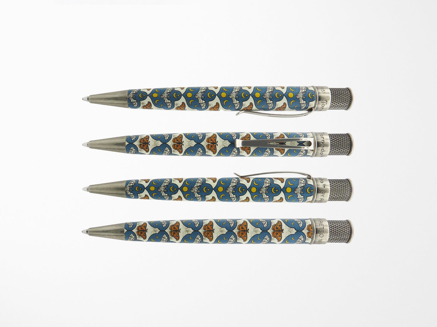 Add a touch of curiosity to your collection with the Bat Rescue Tornado™ from Retro51. Inspired by vintage wallpaper patterns, this captivating design features a detailed motif of flying bats, bright moon phases, and fluttering moths wrapping around the barrel. The matte finish and subtle texture create an enchanting feel in hand, complemented by stonewashed pewter trim for a distinctive antique look. Inside, the smooth Easy Flow ballpoint refill ensures your writing glides as effortlessly as a bat’s night flight through the open sky.
