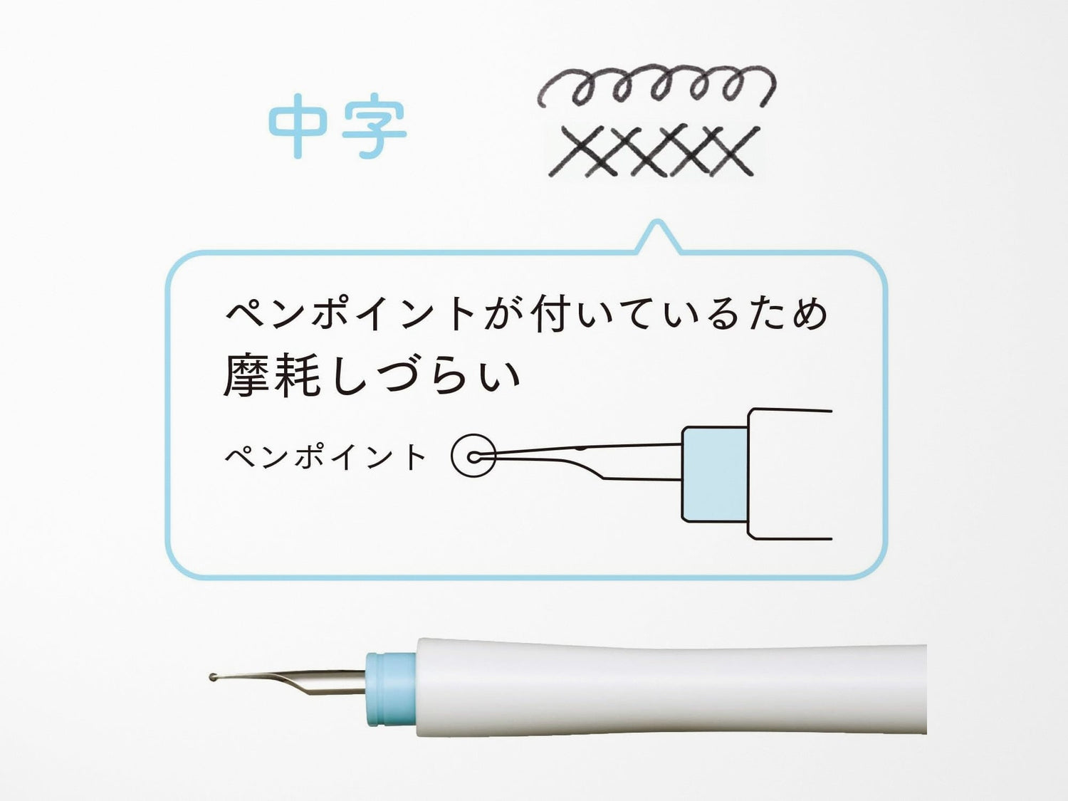The pen comes with a gray barrel, a medium steel nib, and a light blue accent. With its stainless steel nib and durable resin barrel, this pen is a must-have for any fountain pen enthusiast. Made in Japan.