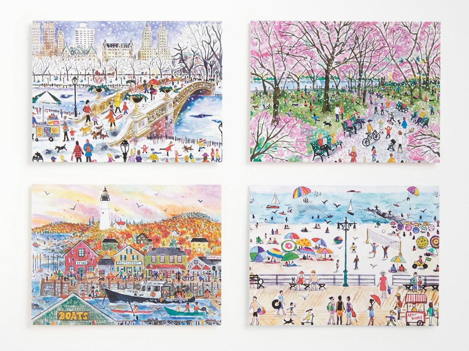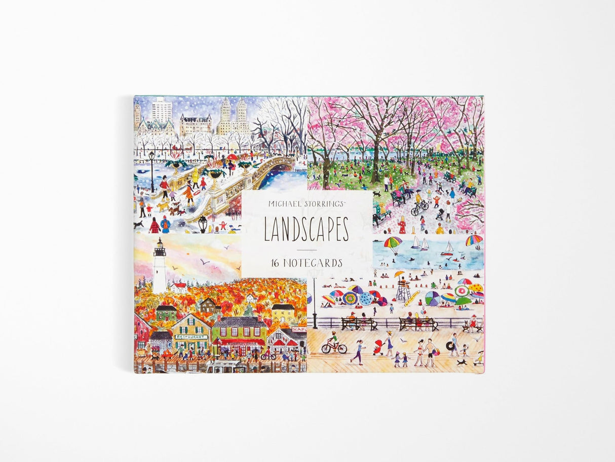 The Michael Storrings Landscapes Greeting Assortment Notecard Box features four seasons of picturesque city and coastal landscapes. Immerse yourself into the colorful and detailed world of award-winning designer, illustrator, and creative director Michael Storrings with 4 unique designs! There are 4 copies of each design, totaling 16 lively notecards.