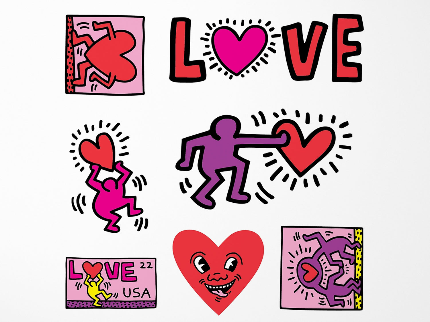 Keith Haring Love Stickers - Collection Sheet of 7 Kiss-Cut Stickers