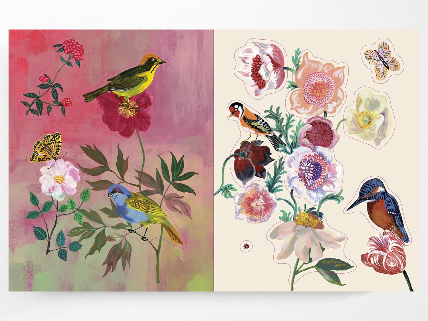 There are over 800 stickers in the book, all created in Lété’s signature dreamlike and enchanting style, including some of her most popular and beloved illustrations, like Mushrooms and Dancing Butterflies, and new creations made just for the book, like a scene from Noah’s Ark. There are vibrant patterns, playful critters, and fanciful landscapes.