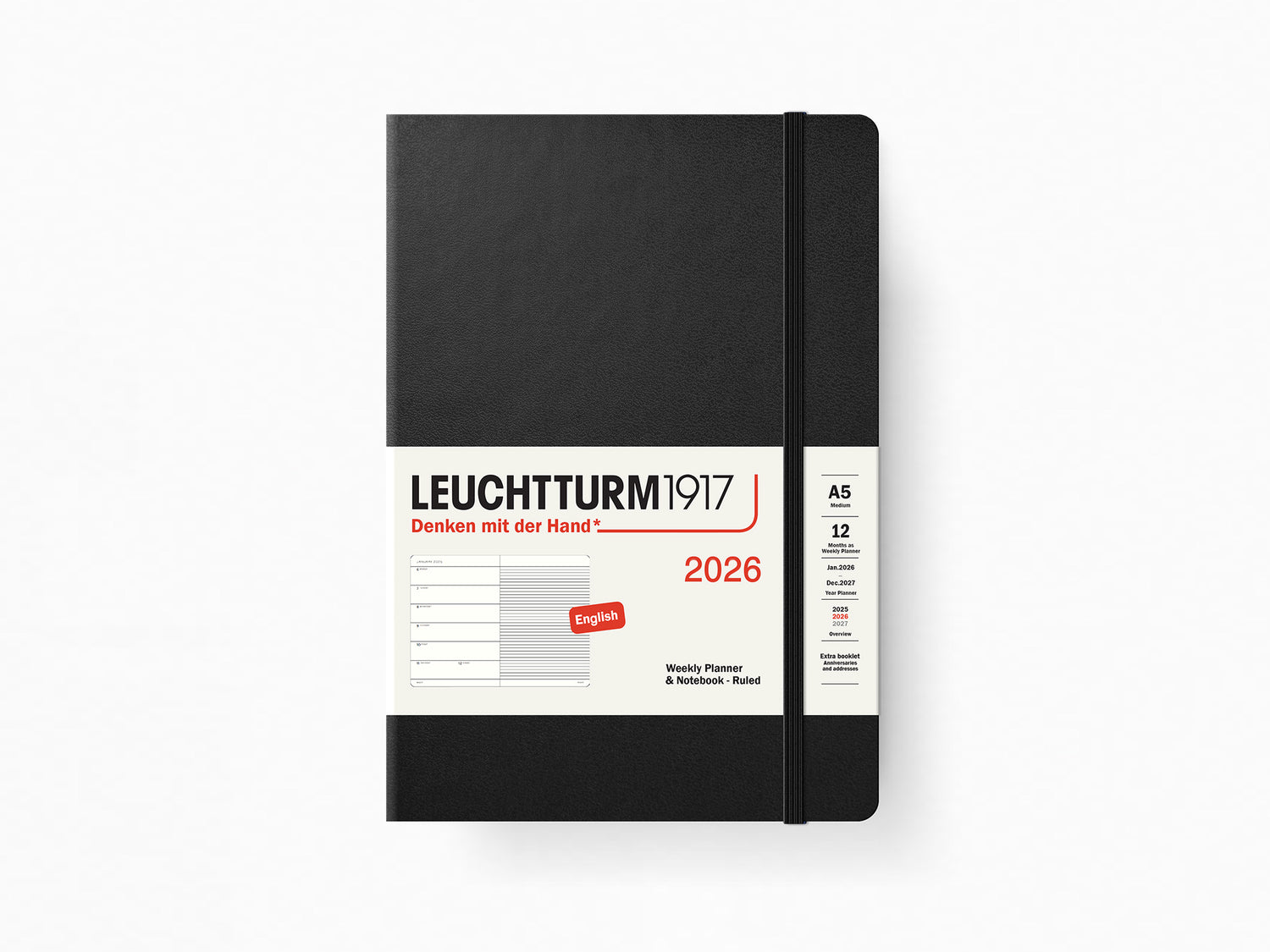 2026 Leuchtturm 1917 Weekly Planner & Notebook - BLACK Hardcover, Ruled Pages