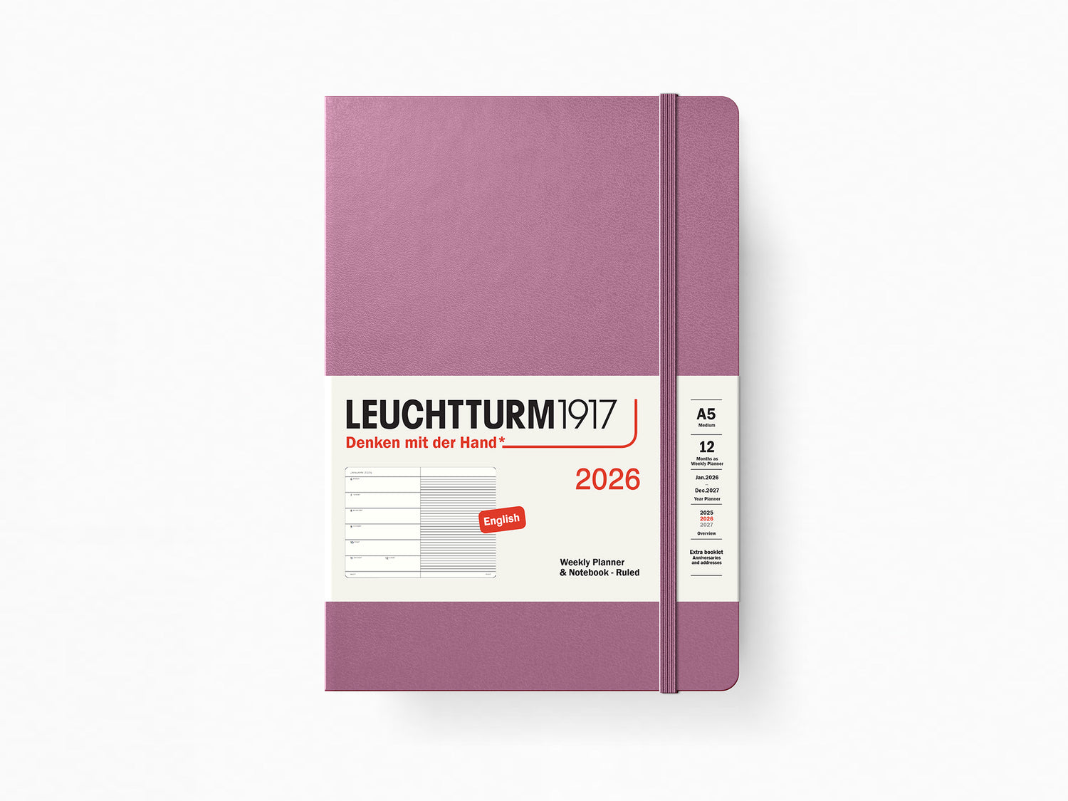 2026 Leuchtturm 1917 Weekly Planner & Notebook - DUSTY ROSE Hardcover, Ruled Pages