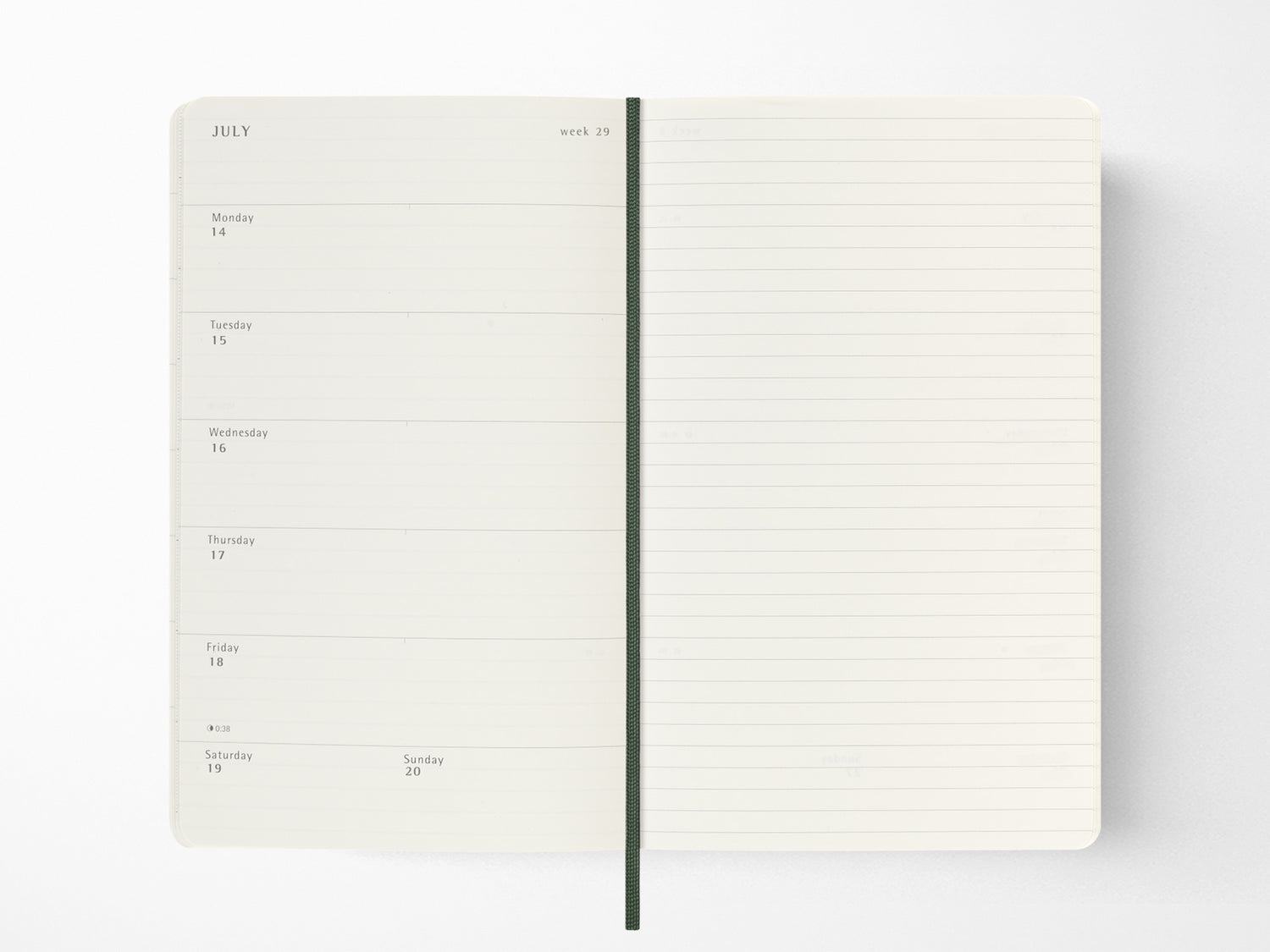 - Week at a view, with the week on the left and a ruled page on the right