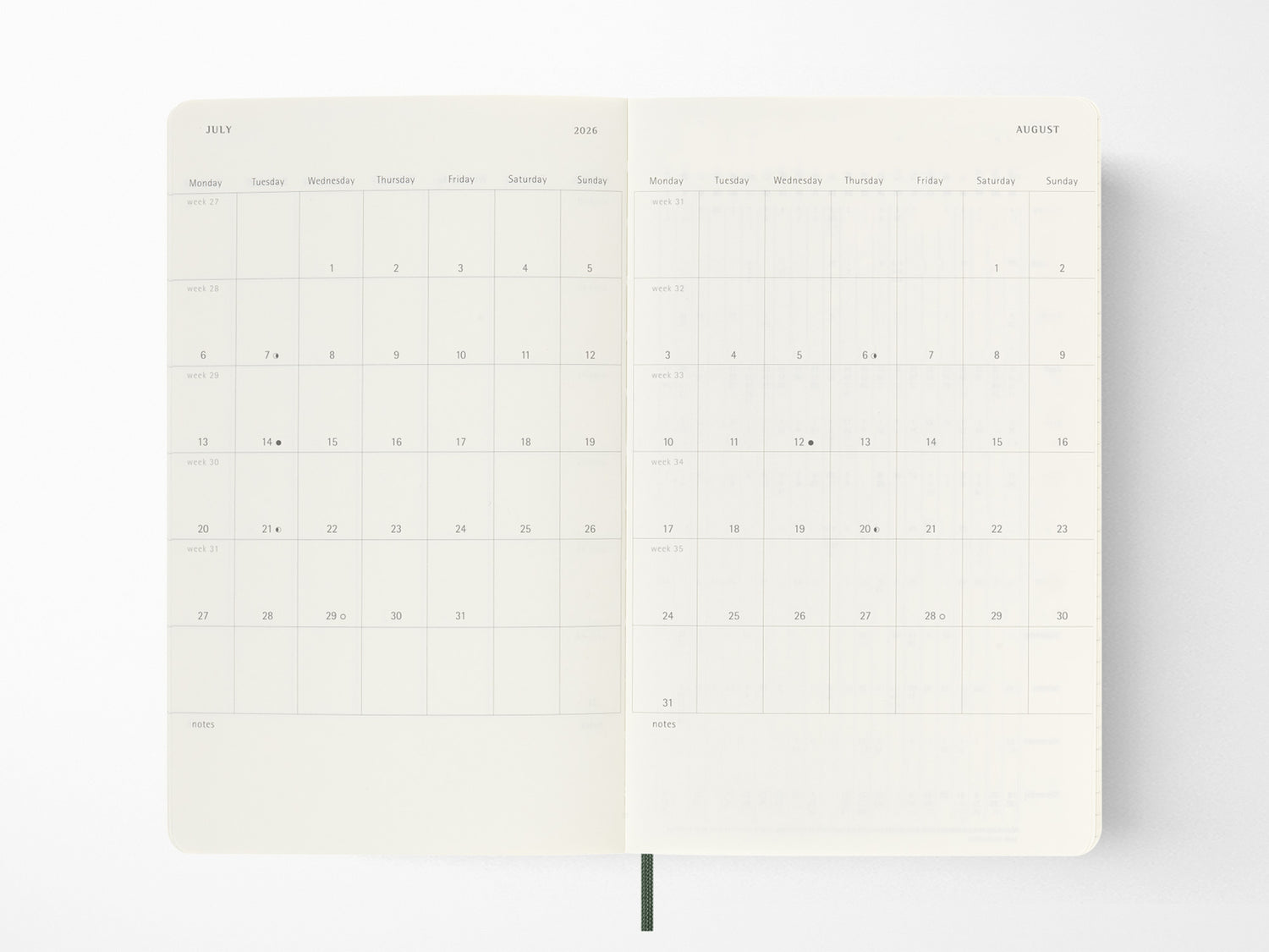 The Moleskine 2026 Weekly Notebook Diary/Planner is formatted to show the week's appointments on the left with a ruled page for notes and ideas on the right. This popular planner style is perfect for students, teachers and professionals.