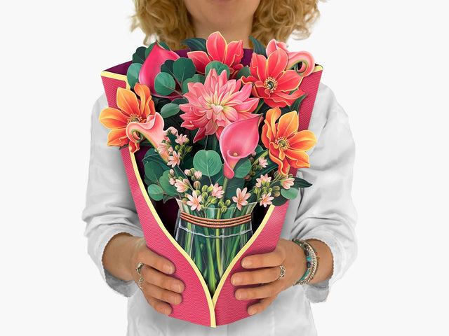 Created by designer Peter Hewitt, FreshCut Paper bouquets are a contemporary, design-forward solution to sending flowers and sharing joy all while treading lightly on the earth. Stunning, life-sized, earth-friendly, pop-up floral bouquets. Far more than a card, our colorful bouquets are a memorable way to celebrate birthdays, holidays, milestones, express thanks, or just “thinking of you”. The exquisitely detailed, botanical designs ensure that these colorful bouquets will find a lasting place in every home.
